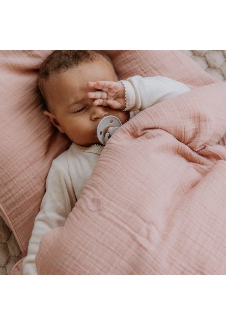 BIBS je obľúbená dánska značka s tradíciou výroby ikonických cumlíkov od roku 1978. Okrem cumlíkov BIBS ponúka aj pestrý prémiový sortiment pre najmenšie deti v minimalistickom škandinávskom dizajne a širokej farebnej palete. BIBS mušelínové obliečky sú vyrobené zo 100% organickej bavlny s certifikátom GOTS, ktorý je zárukou najvyššej kvality ekologického výrobku. Nariasený mušelín je predpraný, hebký a priedušný. Zároveň je vďaka svojej gramáži odolný a nestráca tvar ani pri častom používaní a praní. Kvalitu použitého materiálu spoznáte na prvý dotyk. Mušelín je totiž najhebkejšia bavlnená látka, každým praním sa ešte viac zjemňuje a je mimoriadne príjemná na kontakt s jemnou detskou pokožkou. Samozrejmosťou detských posteľných obliečok BIBS je typický škandinávsky minimalistický dizajn, v ktorom je dokonale prepracovaný každý detail. Neodmysliteľnou súčasťou tejto dánskej značky je roztomilé srdiečko, ktoré nemôže chýbať ani na obliečkach. Pekným dizajnovým detailom je aj nápadné lemovanie, ktoré napomáha odolnosti materiálu pri používaní a praní. Navliekanie cez praktický kvalitný zips. Set obliečok je zabalený v mušelínovej taštičke vo farbe obliečok. Rozmery : Obliečka na vankúš : 40 x 45cm Obliečka na prikrývku : 70 x 100cm Mušelínová taška : 20 x 22cm Zloženie : 100% organická BIO bavlna Certifikát GOTS – Global Organic Textile Standard. Spĺňa prísne podmienky ekologického spracovania, výroby, balenia, označovania, obchodovania a distribúcie. Údržba : Pranie na 30°C v práčke, jemný program. Nežehliť, stratil by sa nariasený efekt mušelínu. Nečistiť chemicky, nesušiť v sušičke. Čím viac sa mušelín perie, tým je mäkší a viac absorbuje vlhkosť. Používanie aviváže môže znižovať absorpčnú schopnosť.
