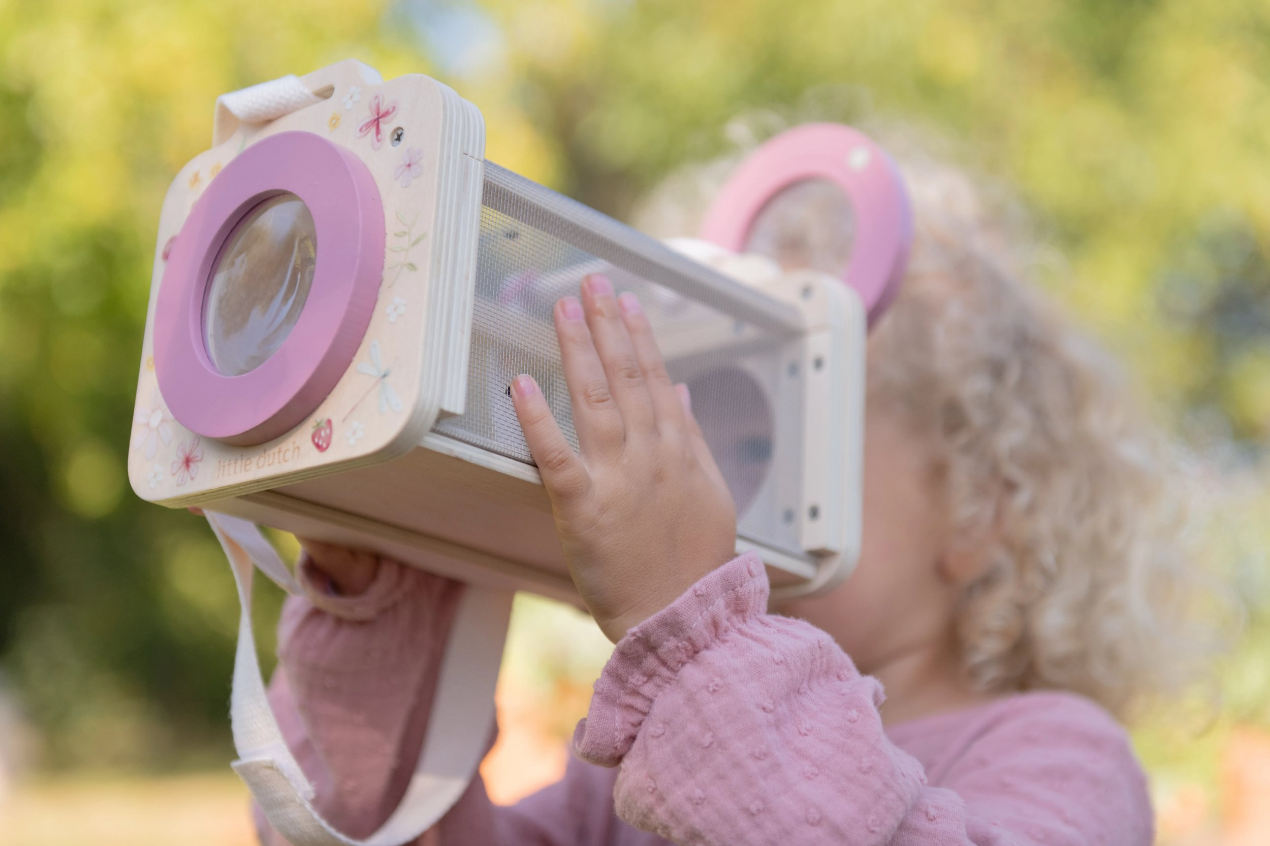 Unikátní pomůcka pro malé zvídavé přírodovědce umožní dětem zkoumat zblízka a bezpečně hmyz, který žije na zahradě, na louce nebo v lese. Velká lupa slouží i jako dvířka, kterými se hmyz dostane dovnitř boxu. Boční stěny jsou ze síťoviny, aby byl hmyz uvnitř v bezpečí a mohl dýchat. Popruh umožňuje snadné nošení na krku s volnýma rukama. Po skončení pozorování hmyz můžete bez problémů vypustit zpátky do přírody, kam patří!