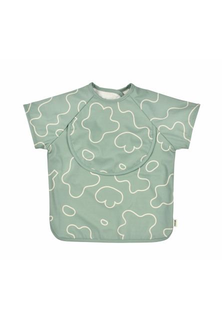 Nastavitelné zapínání na druky za krkem umožňuje snadné oblékání i přizpůsobení bryndáku velikosti dítěte. Elastické zakončení rukávů poskytuje pohodlí při nošení.