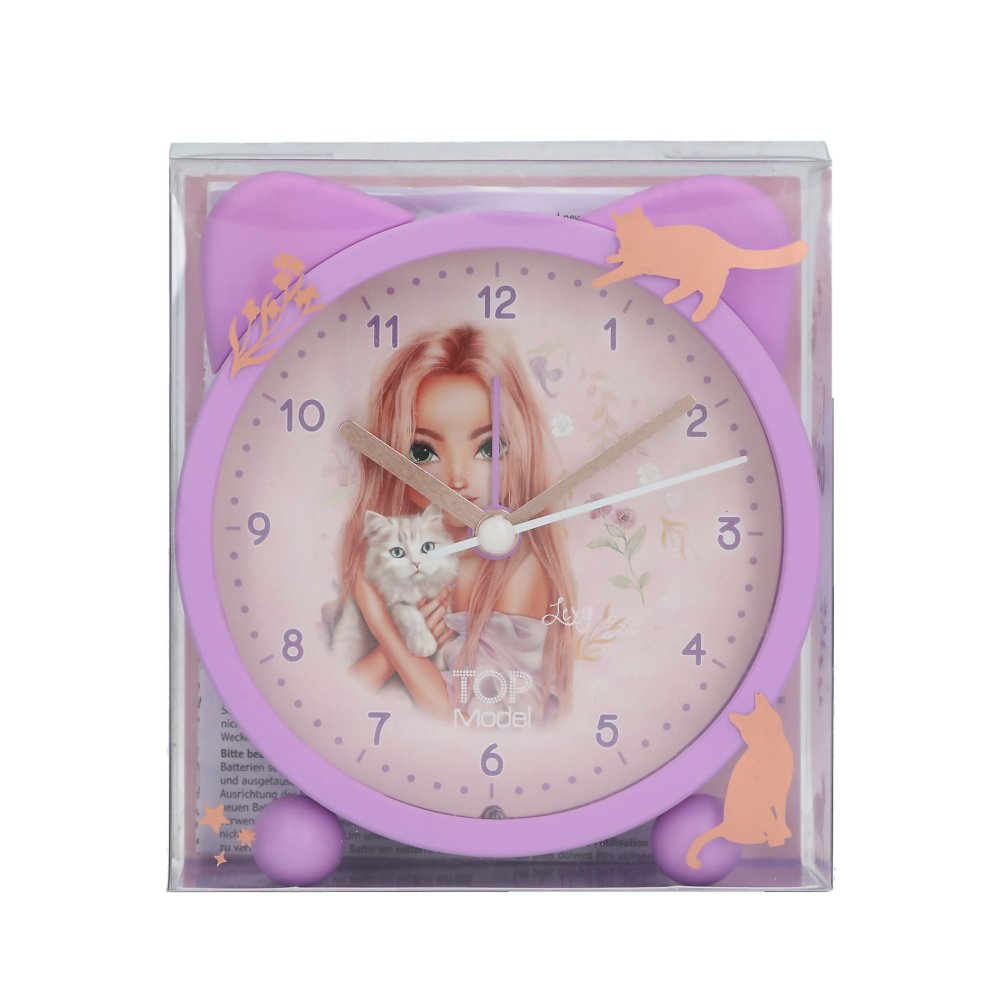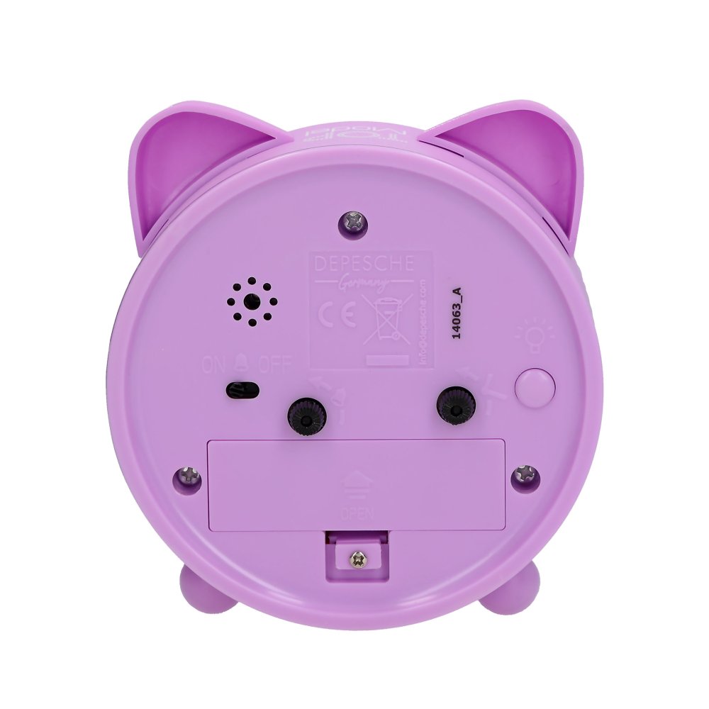 Roztomilý budík TopModel z kolekcie BLOOMING KITTY vo fialkovej farbe s uškami. Je tichý, má funkciu svetla a je na batérie 1xAA1,5V (súčasťou balenia) Materiál: plast, priemer 11cm