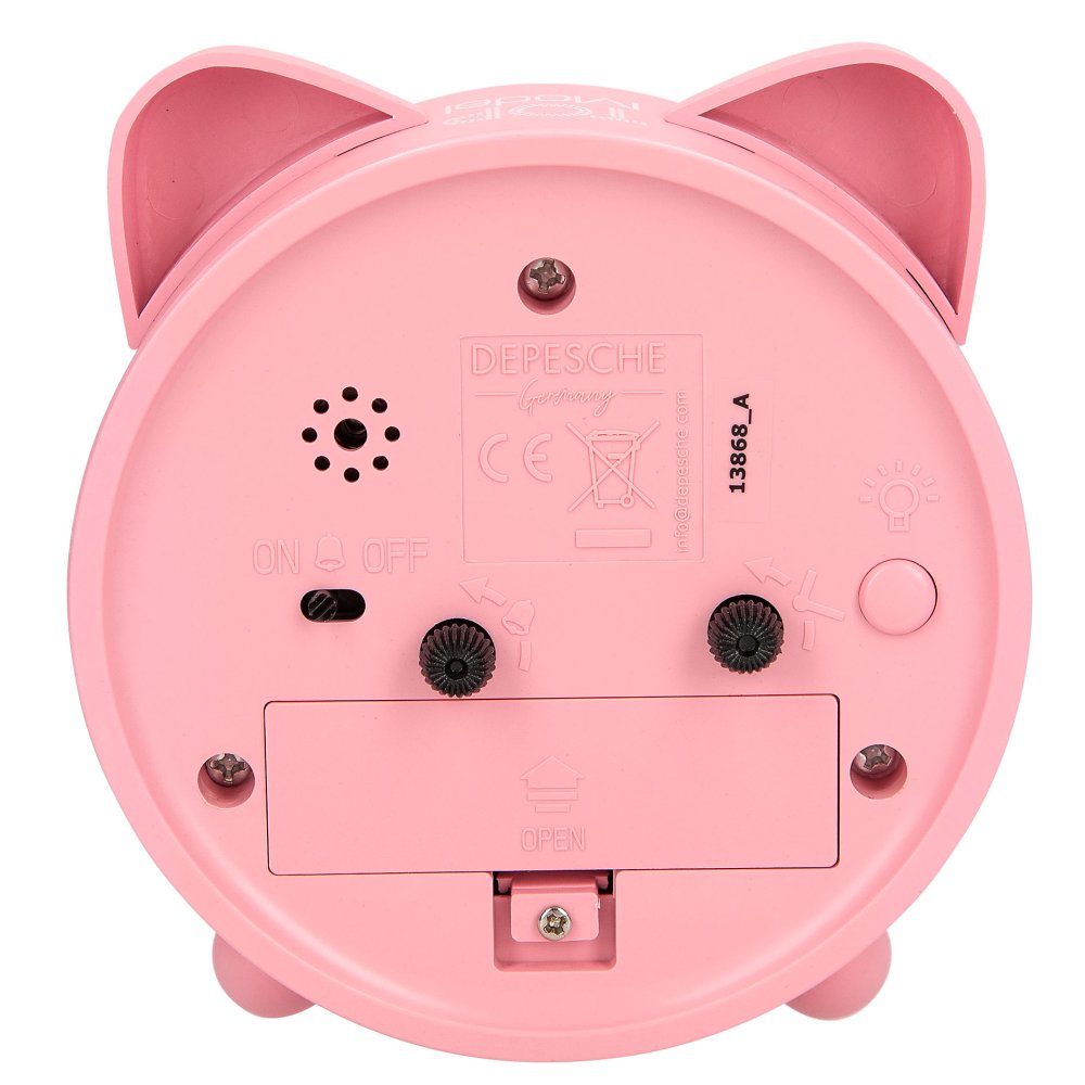 Roztomilý budík TopModel s roztomilou potlačou zvieratiek v ružovej farbe s uškami. Je tichý, má funkciu svetla a je na batérie 1xAA1,5V (súčasťou balenia) Materiál: plast, priemer 11,5 cm