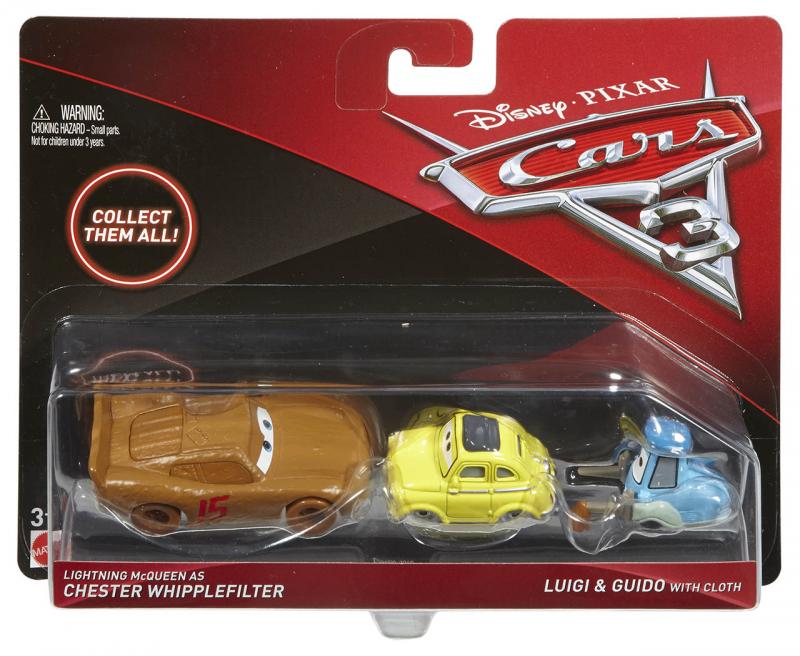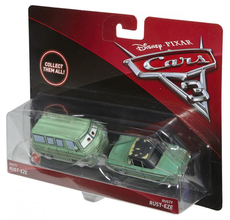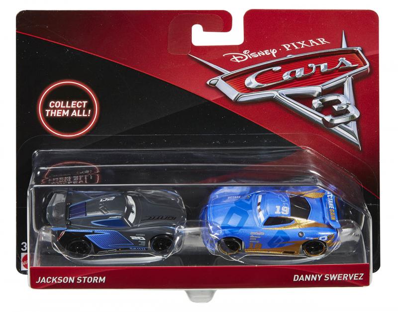 Toto skvelé dvojbalenie áut prináša najobľúbenejšie scény z filmu Autá 3 zo štúdií Disney a Pixar. Každé auto v mierke 1:55 má autentický filmový dizajn, prepracované detaily postáv aj kolies, ktoré sa otáčajú pre realistickú hru. Fanúšikovia si zamilujú rad dynamických postáv nakombinovaných pre zábavu pri kreatívnom rozprávaní! Fanúšikovia filmu Autá si užijú prehrávanie príbehov z filmu a vymýšľanie nových vlastných dobrodružstiev! Každé dvojbalenie sa predáva samostatne v závislosti na dostupnosti.