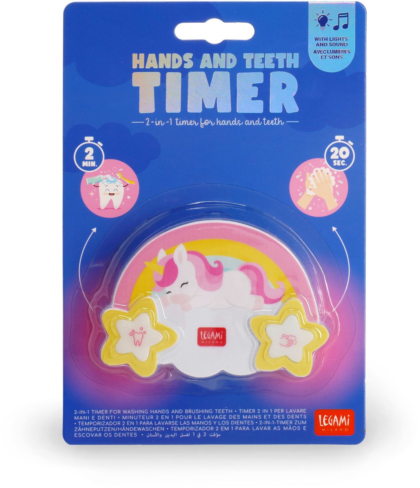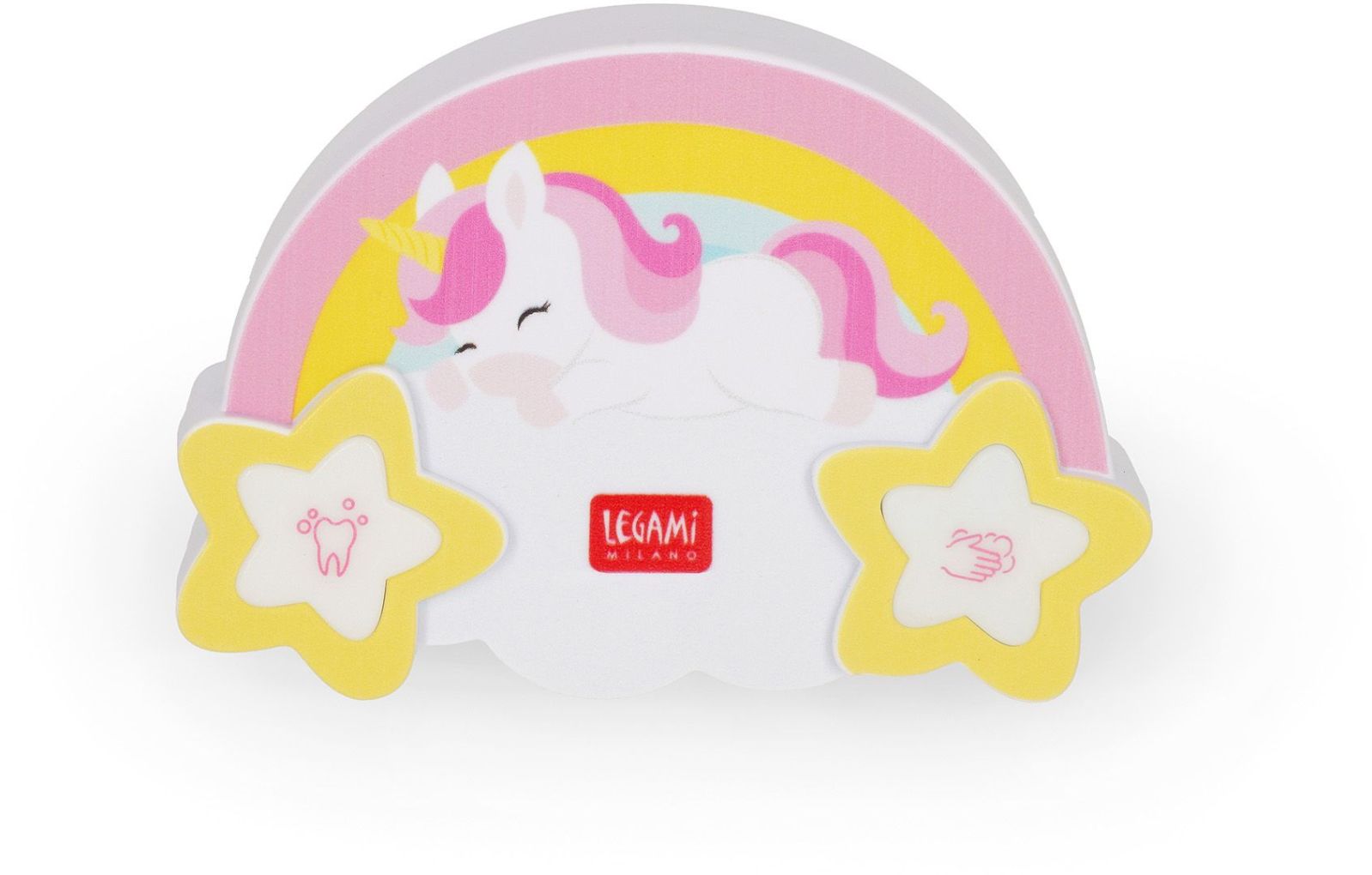 Uľahčite deťom dodržiavanie hygienických návykov s veselým časovačom, ktorý meria odporúčanú dobu umývania rúk aj čistenia zubov. Legami časovač s motívom jednorožca pomáha premeniť každodennú rutinu na zábavu. Hravý dizajn inšpirovaný jednorožcom urobí z kúpeľne obľúbenú miestnosť a deti motivuje k pravidelnej starostlivosti o zdravie.