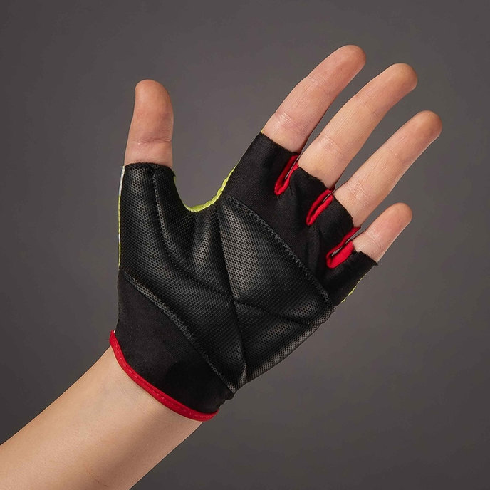 Horná strana vyrobená z elastických, priedušných materiálov pre dokonalé sadnutie na detskú ruku a správne vetranieDlaň s lemom z protišmykového GriptecuMožno prať do 30 ° C Produkt je vo farbe Žltá/Červená.