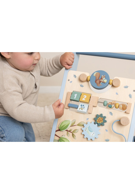Drevené multifunkčné chodítko so stabilnou konštrukciou je ideálne na trénovanie chôdze detí od 12 mesiacov, ktoré sú takmer pripravené urobiť prvé kroky. Užite si spoločne radostné okamihy, keď vaše dieťa prvýkrát prejde celú miestnosť! Chodítko zároveň ponúka množstvo zaujímavých aktivít pre skúmanie a pozorovanie. Pohyblivé a otáčavé časti s krásnymi ilustráciami motívov zo života v lese dieťa zabavia a zároveň podporujú rozvoj jeho motorických zručností.