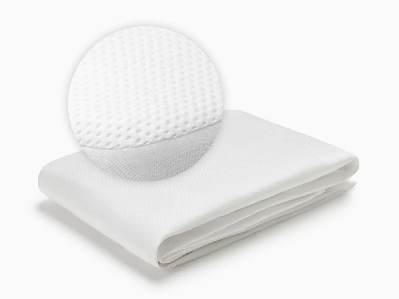 Bavlněný chránič matrace Ecus Kids Care do dětské postýlky zajišťuje díky inovativní 3D síťované struktuře optimální cirkulaci vzduchu, čímž zabraňuje přehřívání dítěte a udržuje matraci svěží. Na spodní straně je opatřen tenkou vrstvou polyuretanu (PU), která jej činí plně voděodolným a chrání matraci před politím a skvrnami, aniž by byla narušena prodyšnost či komfort. Elastické boky z pružné látky zaručují perfektní přizpůsobení matraci a snadné nasazení.