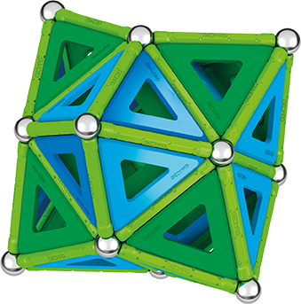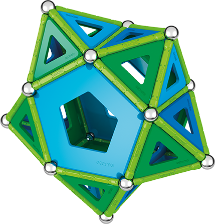 Magnetická stavebnice GEOMAG Classic Panels ze 100% recyklovatelného materiálu. Stavebnice obsahuje 36 zelených magnetických tyček, 36 ocelových kuliček, 42 výplní v modré a zelené barvě. Celkem 114 dílků. Stavebnice je určena pro děti od 5 let.