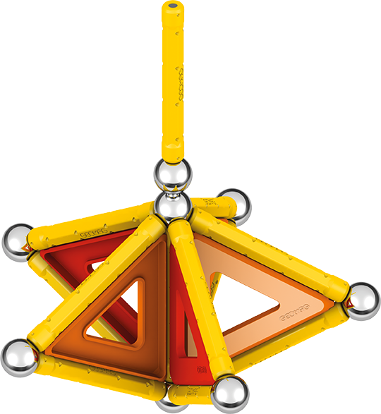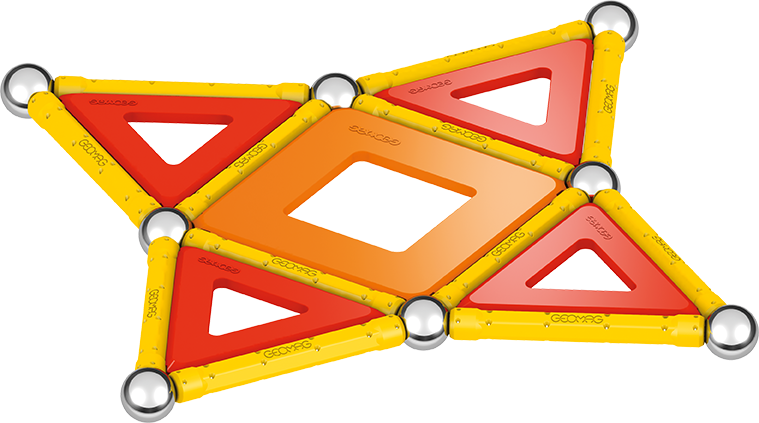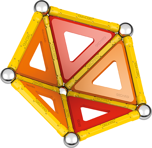 Magnetická stavebnice GEOMAG Classic Panels ze 100% recyklovatelného materiálu. Stavebnice obsahuje 12 žlutých magnetických tyček, 12 ocelových kuliček, 8 trojúhelníkových, 2 čtvercové a 1 pětiúhelníkovou plastovou výplň v kombinaci oranžové a červené barvy. Celkem 35 dílků. Stavebnice je určena pro děti od 5 let. Vyrobeno ve Švýcarsku.