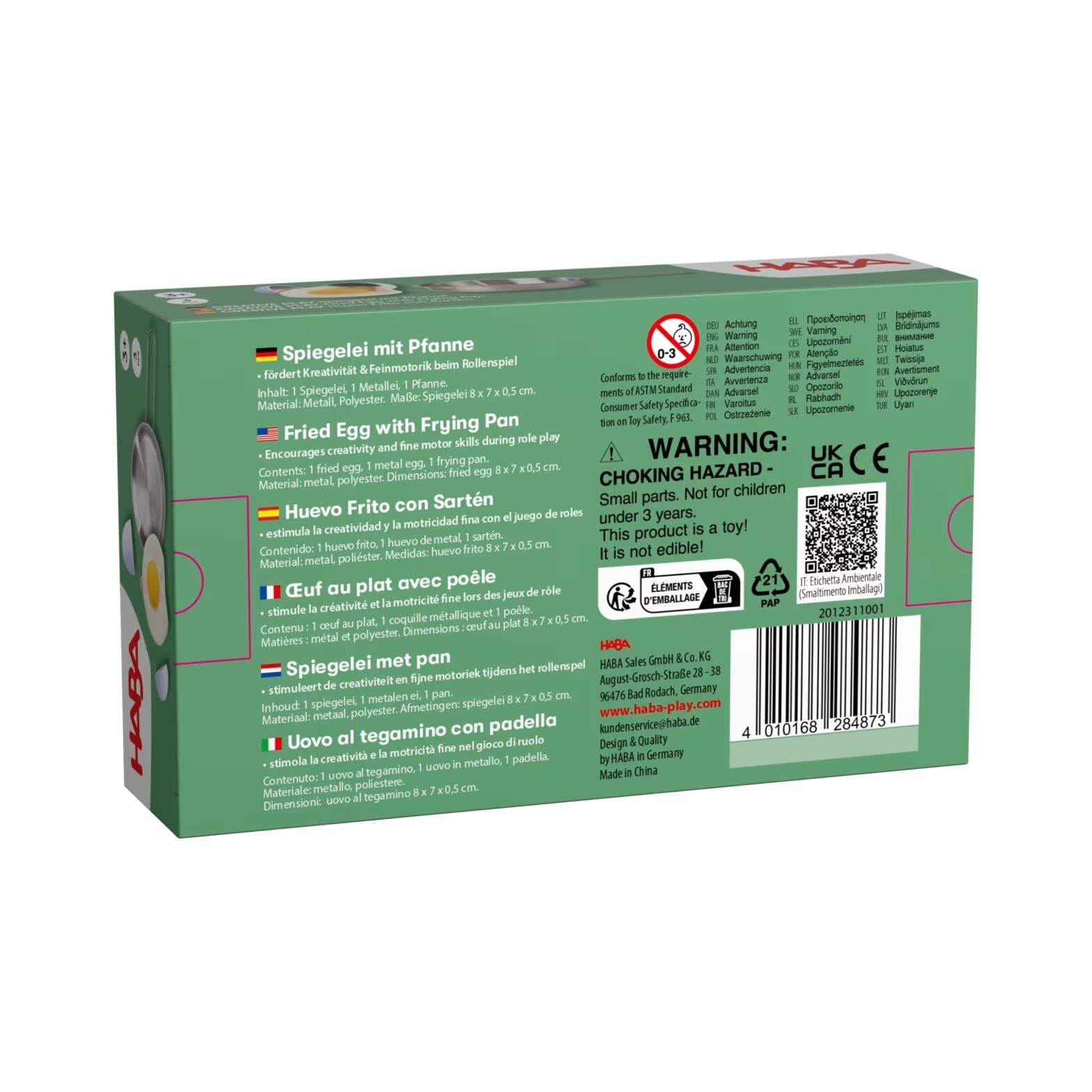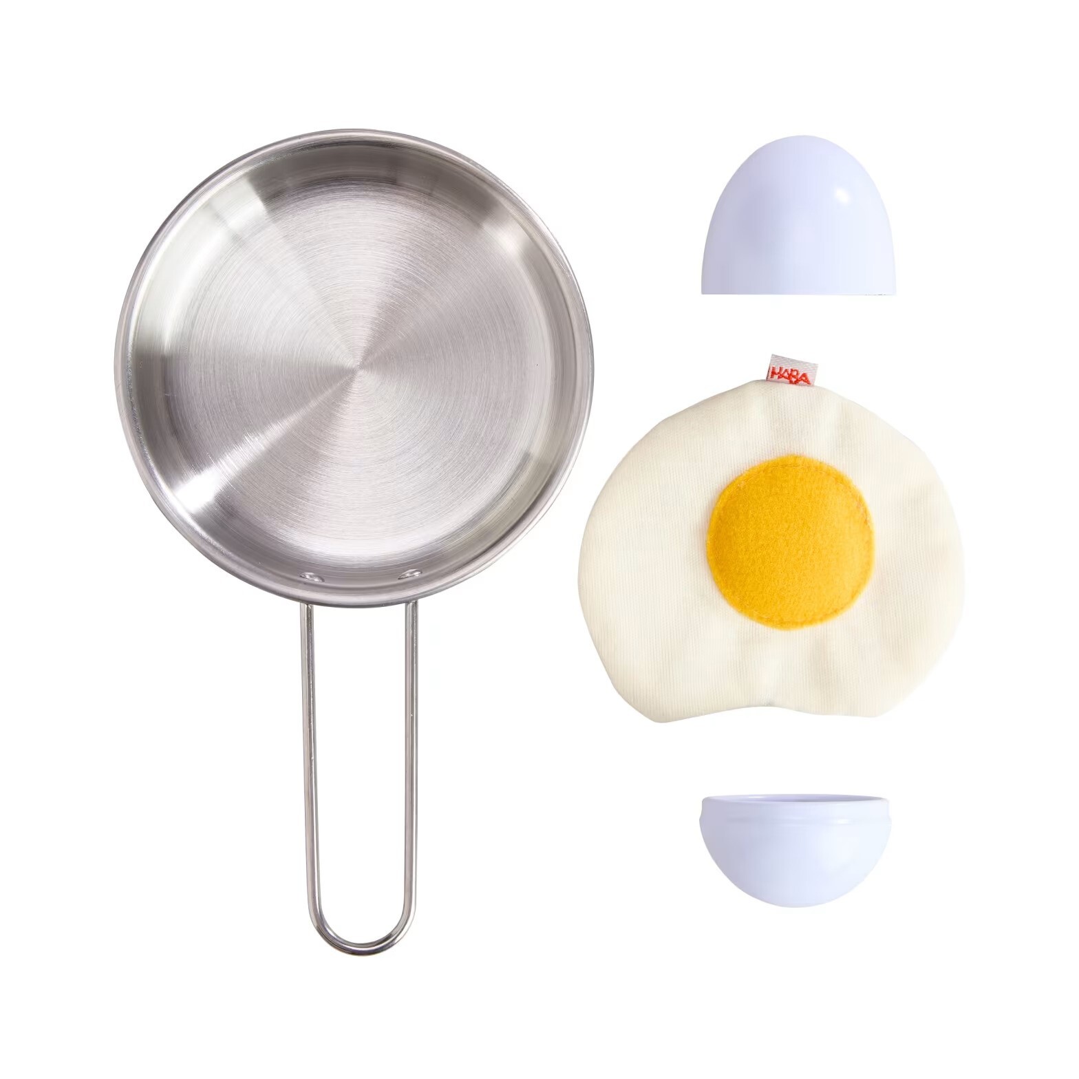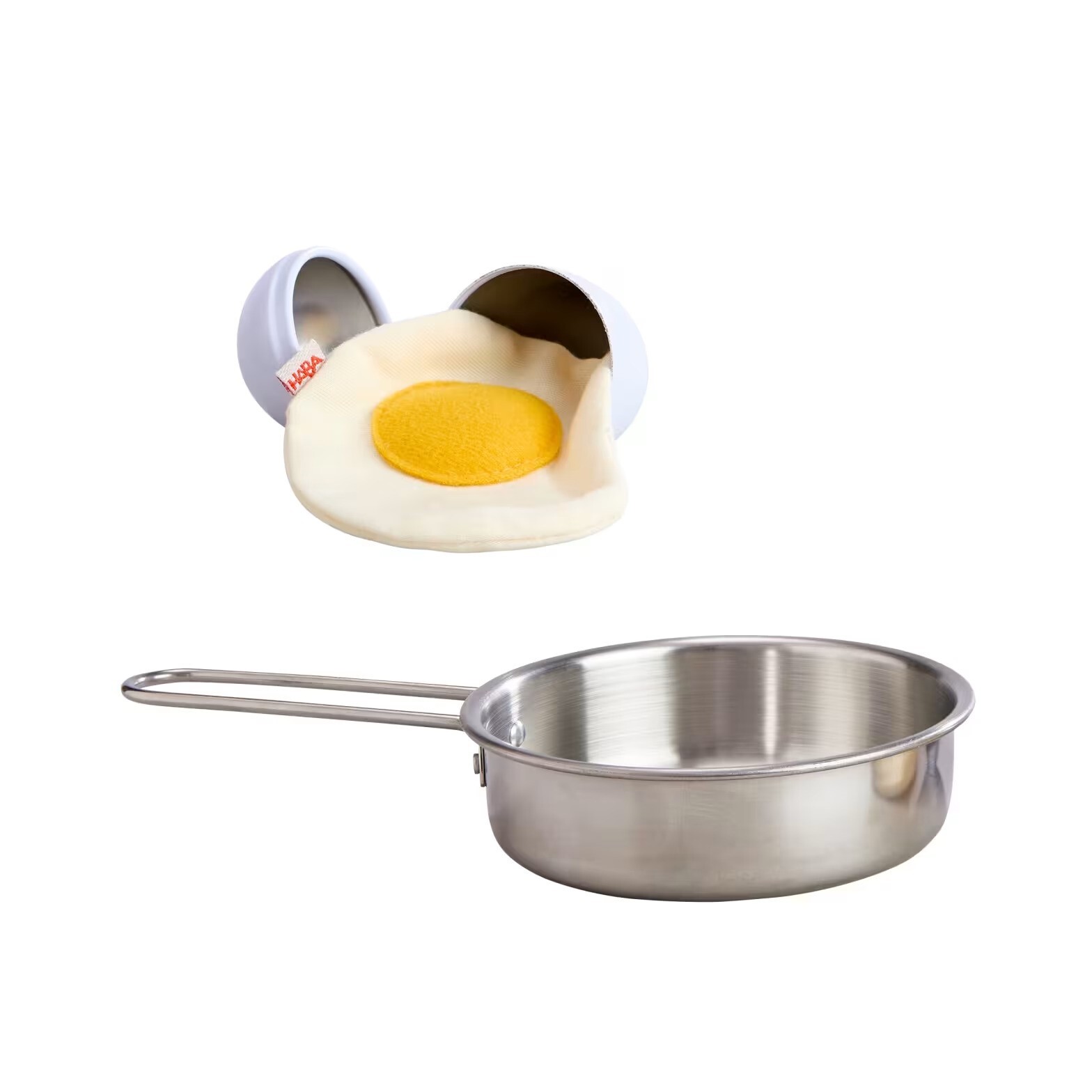 Toto mäkké látkové vajíčko je ukryté v kovovom obale, ktorý môžu deti „rozbiť“ a vajíčko následne „vypražiť“ priamo na priloženej panvici.