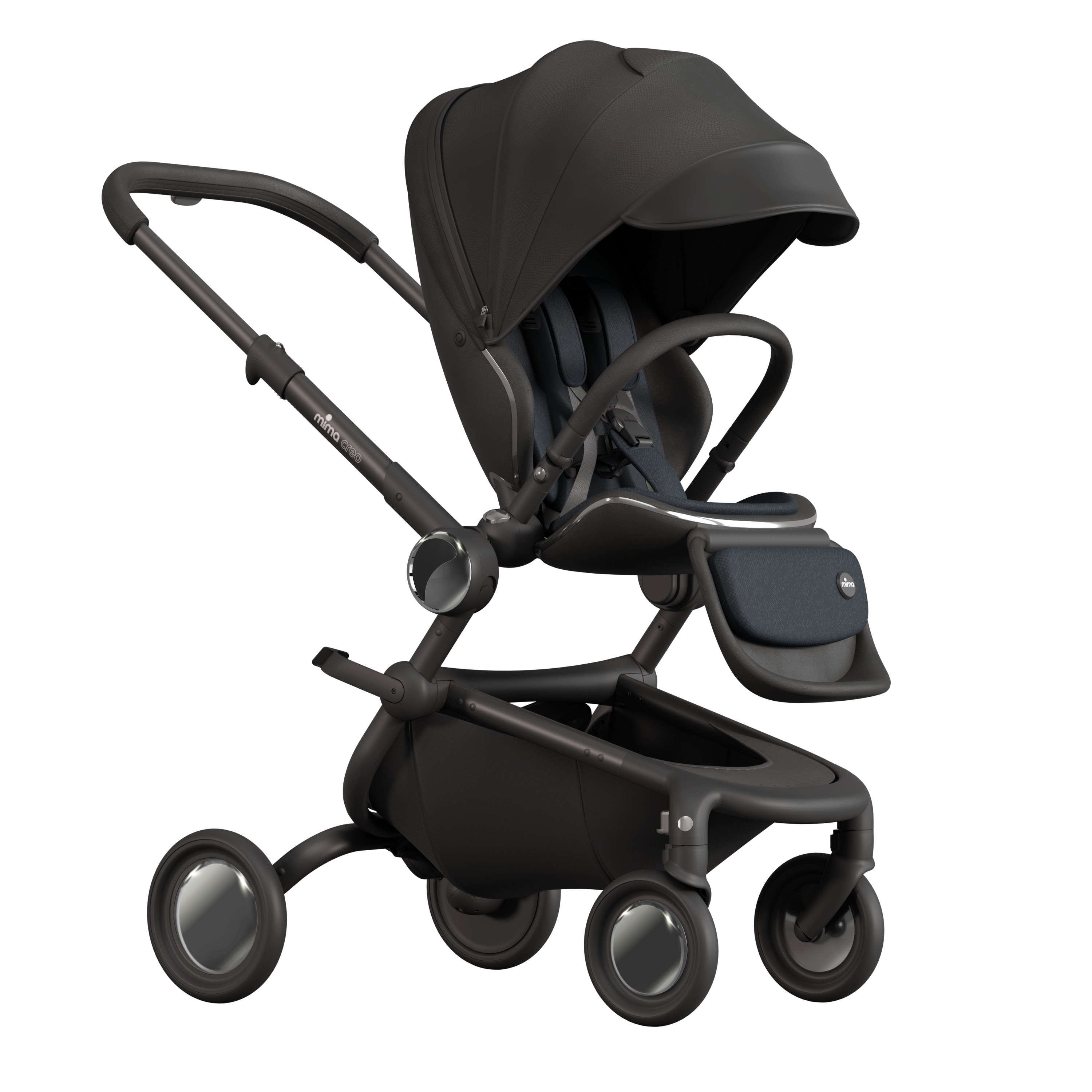 Ke kočárku je možné dokoupit samostatně prodávanou korbičku pro děti od narození Mima Creo, fusak Mima Creo a adaptéry pro připevnění autosedačky.