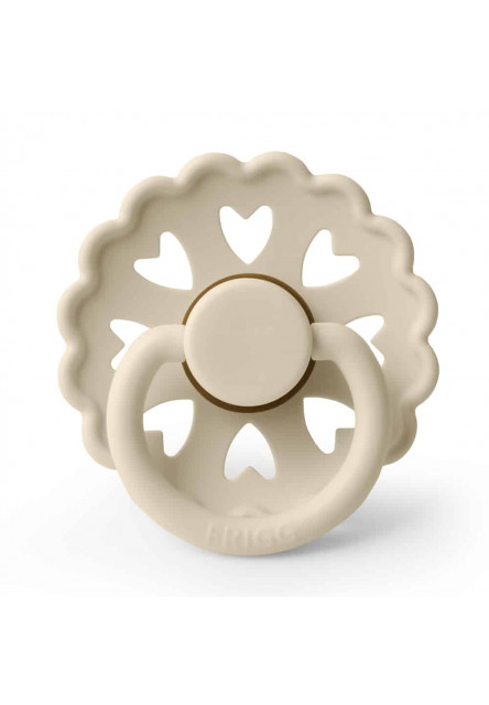 Cumlík je vyrobený z prírodného kaučuku, pričom jeho tvar je zakrivený jemne smerom von, aby sa zabránilo podráždeniu pokožky. Každý cumlík je strojovo testovaný na závadnosť, aby sa k našim najdôležitejším zákazníkom dostal vždy perfektný produkt. Tvar štítu je zakrivený jemne smerom von, aby sa zabránilo podráždeniu pokožky. Pre väčšiu bezpečnosť sú v štíte prítomné vzduchové otvory. Nový Click-lock™ systém odlišuje cumlík FRIGG od akéhokoľvek iného cumlíku na trhu. Vďaka novému 4-krokovému procesu spájania jednotlivých častí cumlíka je možné cumlík zostaviť jednoduchým kliknutím, bez použitia akejkoľvek sily. Vďaka tomu je cumlík ešte odolnejší ako predtým. FRIGG je 100% dizajnovaný a vyrobený v Dánsku ako jediná značka cumlíkov na svete! Každý cumlík je zároveň vyrobený na princípe zero-waste, čím sa minimalizuje odpad materiálu vďaka možnosti recyklácie. Cumlíky sú vyrábané s maximálny ohľadom na životné prostredie, a zároveň s dôrazom na uspokojenie potrieb najmenších detí. FRIGG kladie dôraz aj na bezpečnosť - cumlíky sú vyrábané bez BPA, PVC a ftalátov, každý cumlík podstupuje stretch a vacuum test pred uvedením do predaja a sú vyrábané podľa najprísnejšej normy EN1400-A2. Spoznajte svet značky FRIGG, inšpirovaný bohyňou zeme, vzduchu a plodnosti podľa severskej mytológie a nechajte sa zlákať dokonalosťou tvarov a farieb. Kolekcia cumlíkov FRIGG Fairytale je inšpirovaná umeleckou tvorbou dánskeho autora H.C. Andersena. Vrúbkované okraje a malé srdiečka vo vnútri štítu napodobňujú jeden z jeho papierových výstrižkov. Každá farba cumlíka je pomenovaná podľa jeho známych rozprávok, ktoré dodávajú cumlíkom nádych fantázie. Tento mimoriadne krásny cumlík, s moderným dizajnom a elegantnými detailmi, upúta pozornosť každej štýlovej mamičky. Vlastnosti: