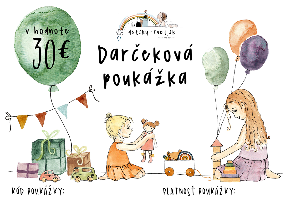 Darčekový poukaz v hodnote 30€ Vám vieme zaslať kuriérom vo vytlačenej podobe, alebo Vám ho zašleme elektronicky na Vami zaslanú e-mailovú adresu.