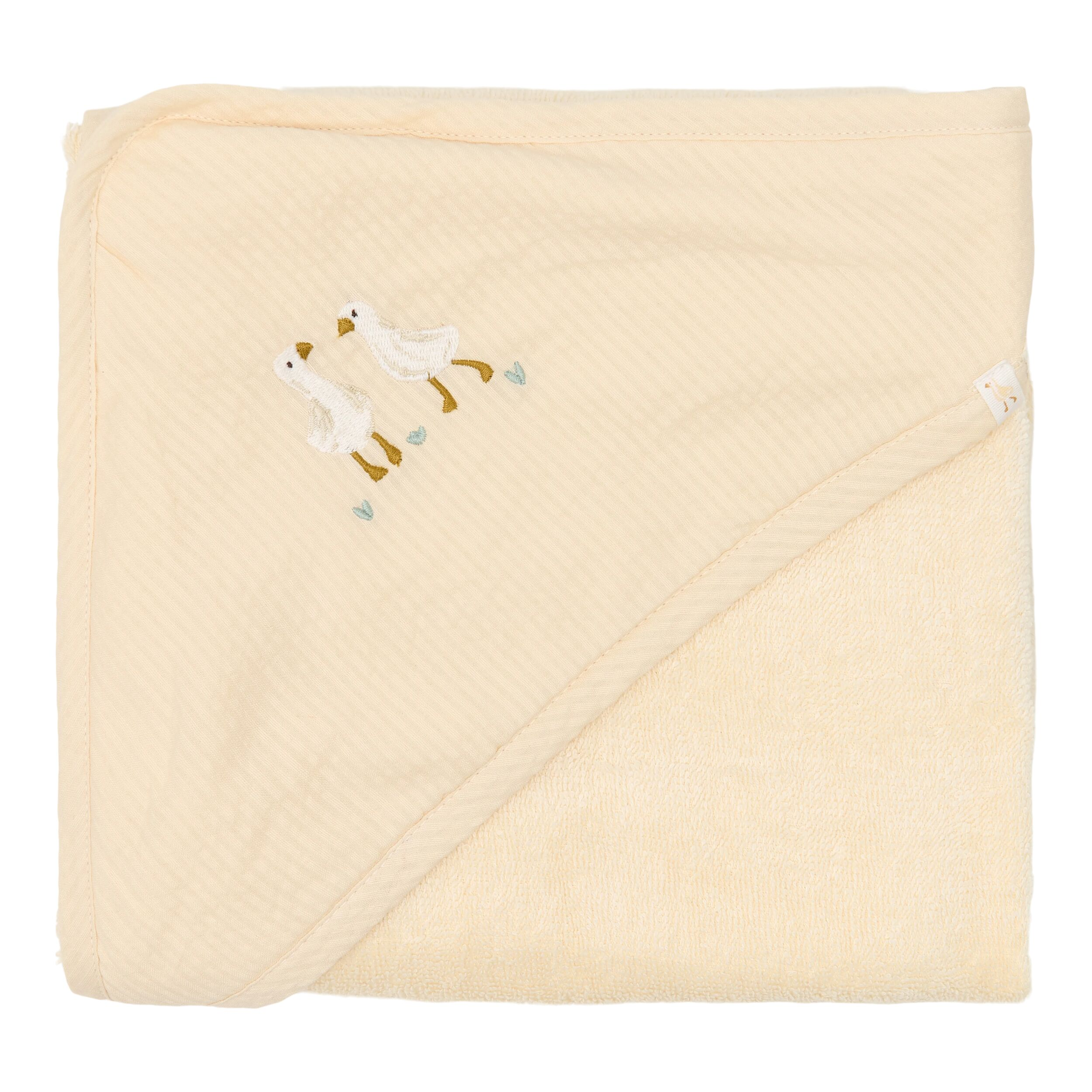 - Součástí sady je žínka ve tvaru husy a osuška s vyšitým motivem husy