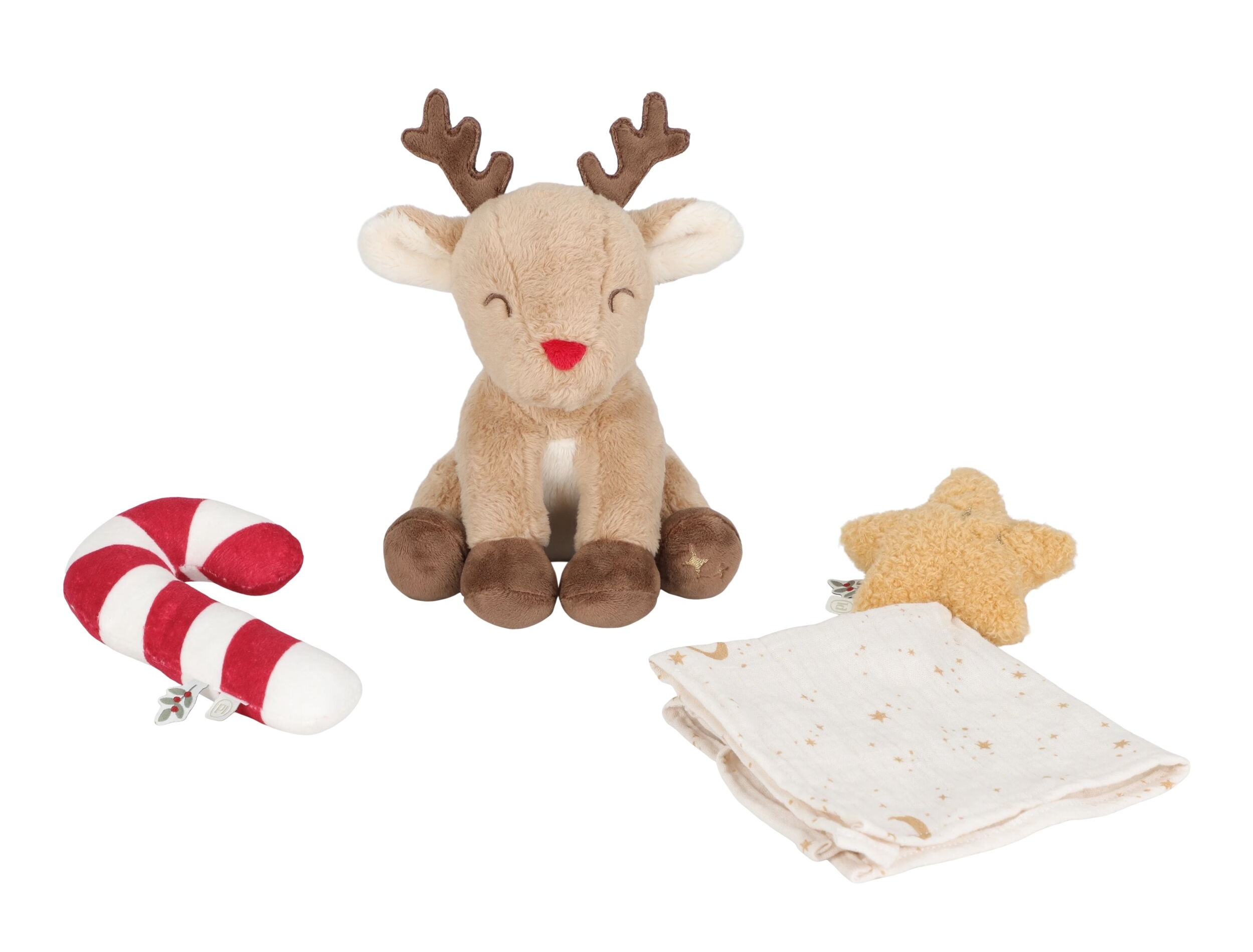 Speciální vánoční edice dárkové sady plyšových hraček obsahuje roztomilého plyšového soba, muchláčka s hvězdou a plyšovou cukrovou hůlku. Sada je vhodná jako vánoční dárek i jako dárek pro novorozené miminko.