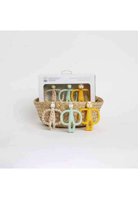 Perfektný darček pre čerstvých rodičov, ktorý má krásny dizajn a je obľúbený medzi detičkami! Získajte hneď 3 ocenené hryzadlá Matchstick Monkey - žirafu Gigi, leva Luda a opičku vo farbe Mint Green ako set 3 v 1! Hryzadlá Matchstick Monkey sú ideálne pre malé ručičky a poskytujú upokojujúcu úľavu boľavým ďasnám. Vďaka šikovným hrbolčekom na zadnej strane hlavy opice je pre rodičov ľahké nanášanie prípravkov na prerezávanie zúbkov a masírovanie ťažko dostupných stoličiek. Ľahko uchopiteľné rukoväte pomáhajú rozvíjať jemnú motoriku a umožňujú bábätkám upokojiť sa. Pridaná antimikrobiálna ochrana BioCote® pomáha chrániť hryzadlo pred širokým spektrom mikróbov, pričom bráni baktériám. Hryzadlá zostanú dlhšie svieže a čistejšie. Ľahko sa čistia v umývačke riadu alebo sterilizátore, pre úľavu od bolesti ich možno umiestniť do chladničky. Vlastnosti: • S mäkkými a jemnými hrbolčekmi zubnej kefky na masáž ďasien • Perfektné na aplikáciu prípravkov na prerezávanie zubov na ťažko dostupné stoličky • Nízka hmotnosť uľahčuje držanie od útleho veku • Obsahuje BioCote ® Antimikrobiálnu ochranu, ktorá udrží hryzadlo dlhšie svieže a čistejšie • Ergonomicky navrhnuté rukovúze pomáhajú rozvíjať jemné motorické zručnosti • Možno použiť ako prvú tréningovú zubnú kefku • Vhodné do umývačky riadu a chladničky • Vhodné pre sterilizáciu studenou vodou a parou • Balené v prenosnej krabičke na opakované použitie • Bez BPA a schválené FDA • Výška: 10,5cm • Vhodné od 3 mesiacov veku dieťaťa