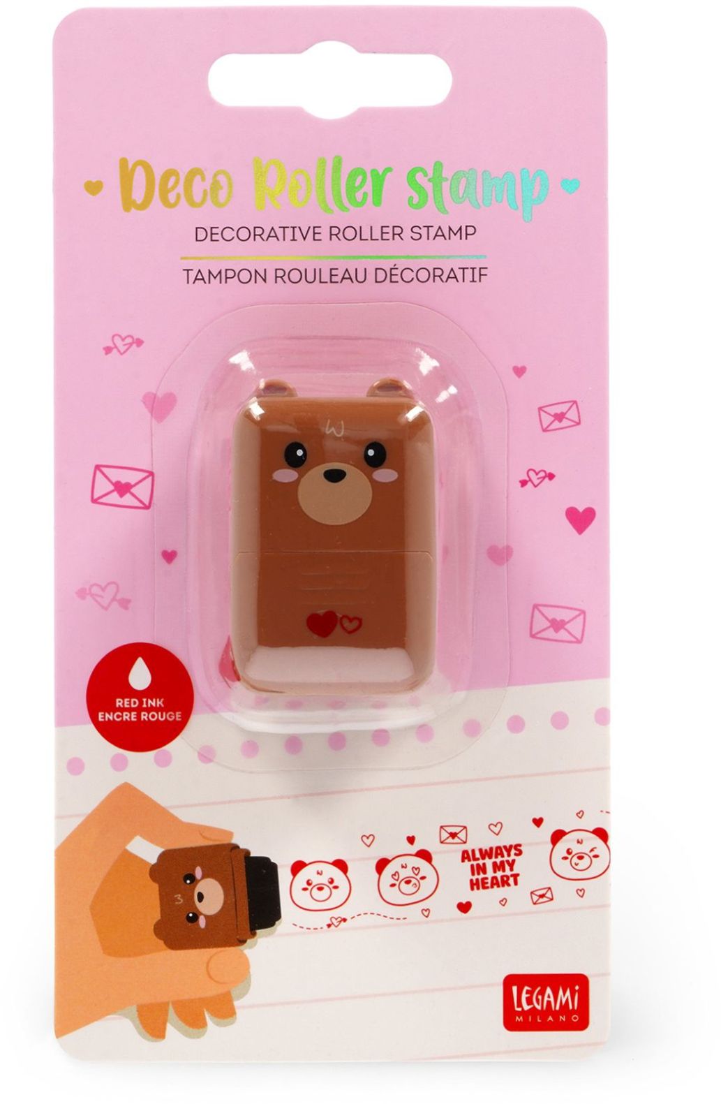 Pravá láska zanechá stopu – a s dekoračným valčekovým pečiatkom Legami Medvedík doslova! Roztomilý tvar medvedíka a valček s červeným atramentom sú ideálne na ozdobenie prianí, balíčkov i drobných odkazov, ktoré chcete poslať od srdca.