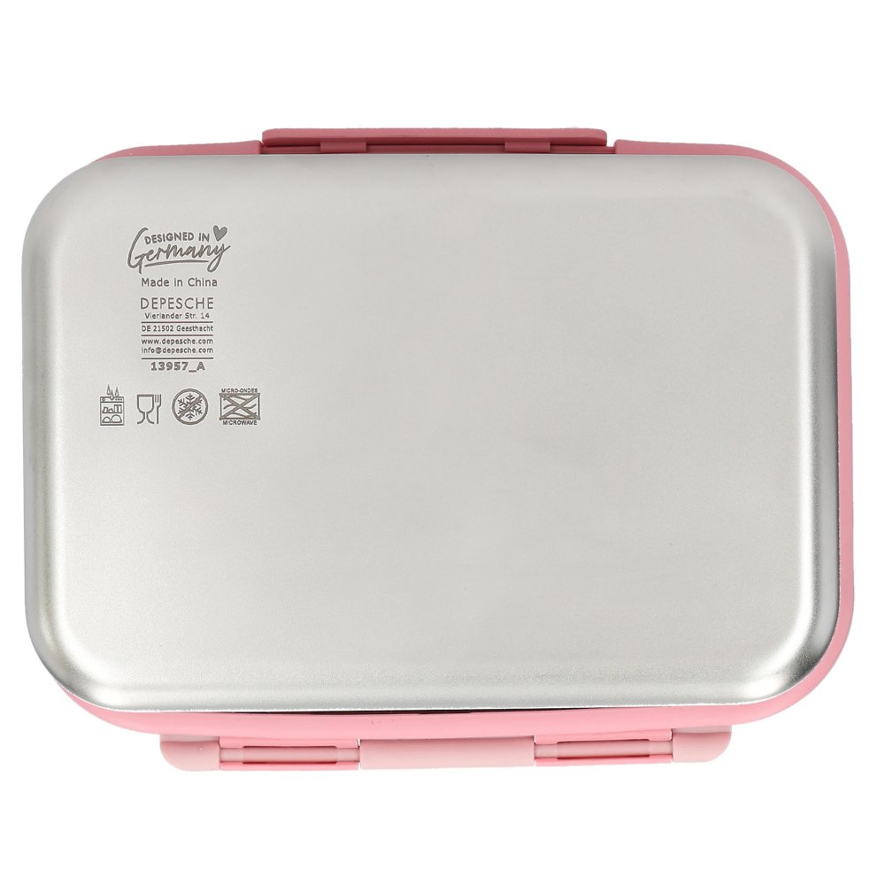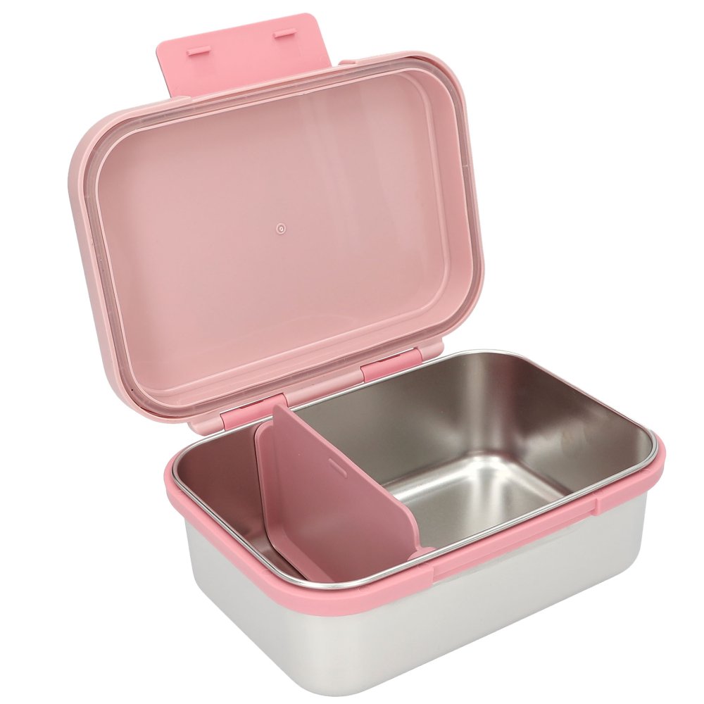 Skvelý nerezový desiatový box TOPModel s krásnou potlačou, vo vnútri s odnímateľnou plastovou priečkou, s objemom 1l, vyrobený z nerozbitného, zápachovo neutrálneho materiálu so silikónovým tesnením, ktorý udržuje potraviny čerstvé, bez BPA, vhodný aj do umývačky riadu. Rozmery: 18x13,5x7 cm