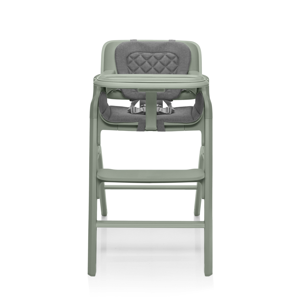 Päťbodový bezpečnostný pás a stabilná konštrukcia zaručia maximálnu ochranu pri každom kŕmení. Hrazda medzi nožičkami zabráni skĺznutiu a zároveň drží odnímateľný pultík s praktickým táckom.