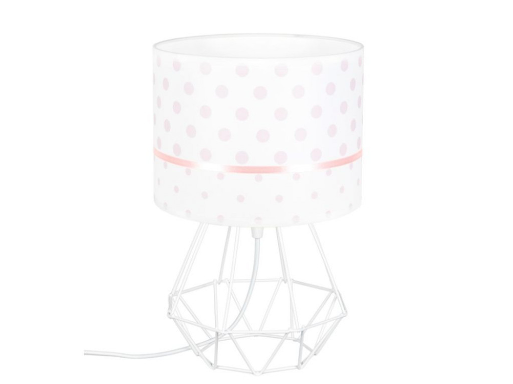 Díky bílému stínítku s růžovými tečkami je stolní lampa vhodná do pokoje holčiček jakéhokoli věku.