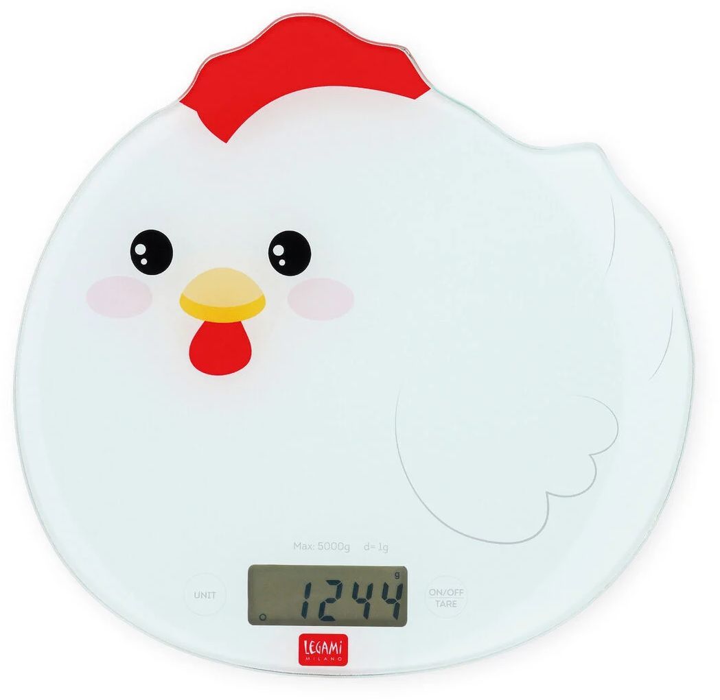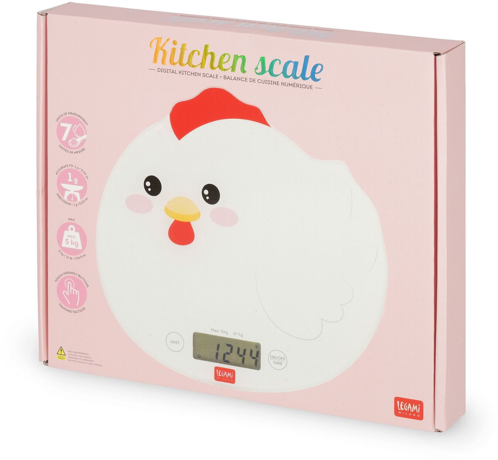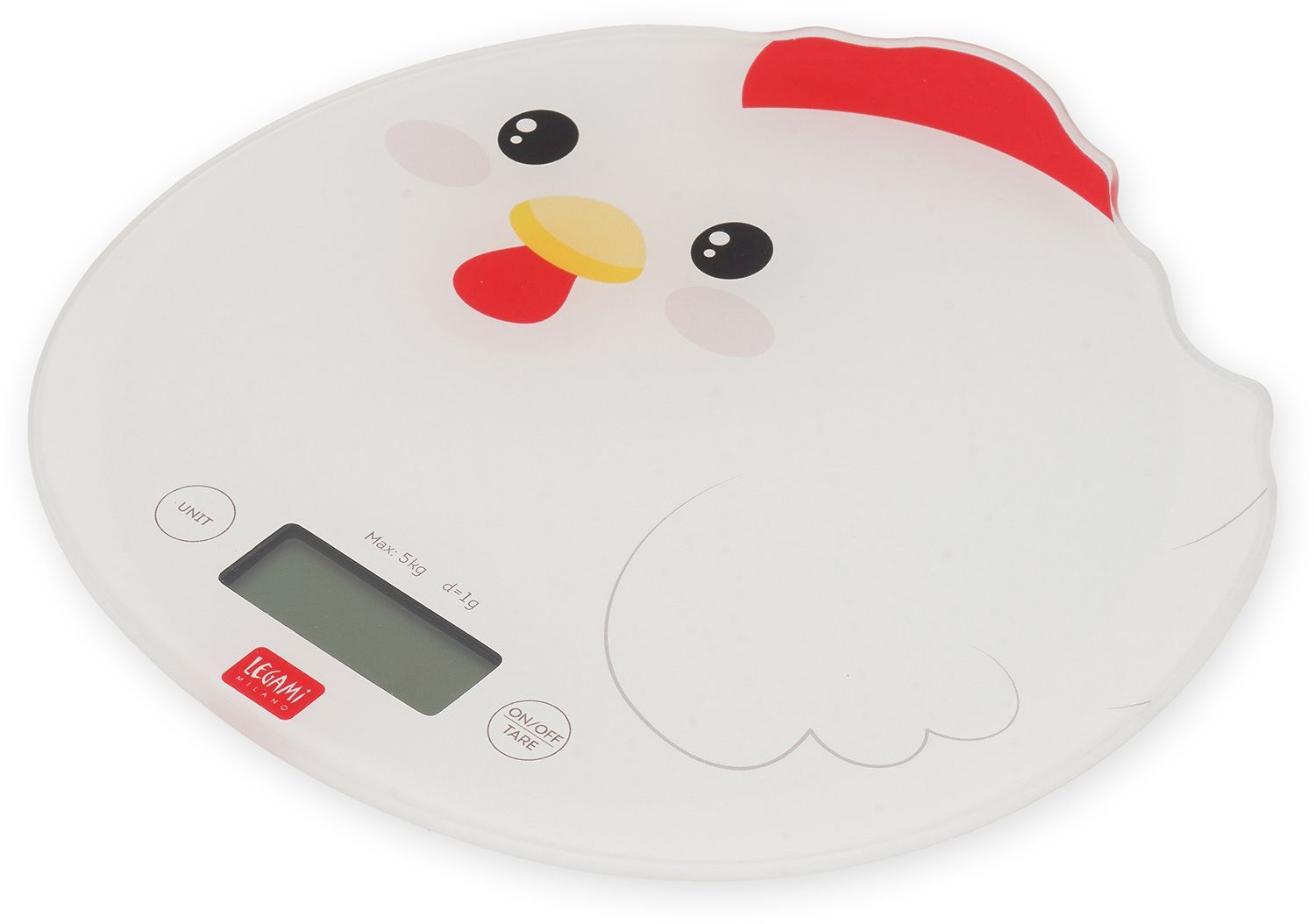 Digitálna kuchynská váha Legami Sliepočka spája praktickosť s hravým dizajnom. Elektronická váha s motívom sliepočky presne odváži ingrediencie na varenie aj pečenie a vďaka plochému tvaru a sklenenému povrchu sa ľahko udržuje v čistote. Veselý vzhľad ozvláštni každú kuchyňu a varenie s deťmi bude zase o niečo zábavnejšie.