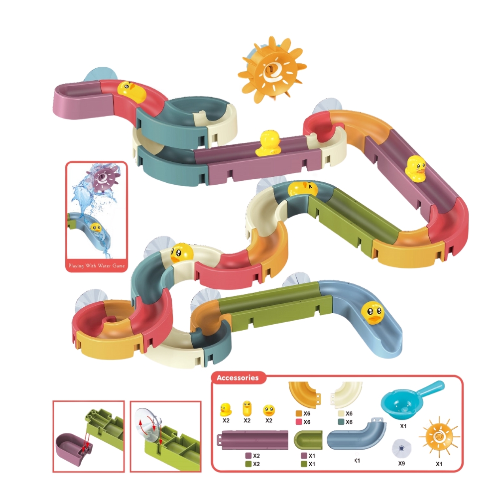 DIY Skluzavka do vody 48 ksNekonečné vodní dobrodružstvíDIY Skluzavka do vody 48 ks přináší dětem ještě více možností pro kreativní a zábavnou hru ve vodě. Díky 48 dílkům si mohou děti poskládat vlastní skluzavku, experimentovat s pohybem objektů ve vodě a objevovat stále nové herní trasy. Součástí balení jsou malé kuličky i roztomilé kačenky, které dělají hru ještě pestřejší a zábavnější. Děti sledují jejich pohyb po dráze, zkoušejí různé kombinace a hravou formou objevují základní principy fyziky.Tato stavebnice do vody podporuje jemnou motoriku, logické myšlení, kreativitu i prostorovou představivost. Skluzavka je vhodná do vany, senzorických vaniček i na interaktivní hry doma či ve školce. Ideální je pro samostatnou hru i společné stavění. Jednoduché spojení dílků umožňuje rychle měnit konfigurace a vytvářet stále nová vodní dobrodružství. Nevhodné pro děti do 3 let. Používejte pouze pod přímým dohledem dospělé osoby.