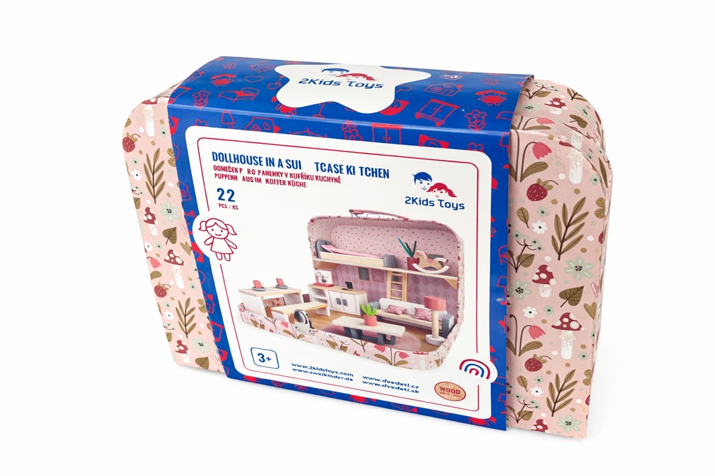Predstavte si kúzelný svet, ktorý sa zmestí do ruky. Malý domček pre bábiky ukrytý v elegantnom kufríku. Perfektný na cesty, hranie doma aj na návšteve u babičky. Tento originálny kufríkový domček sa po otvorení premení na útulné obydlie pre bábiky, plné detailných dekorácií, drobných nábytkových prvkov a miestností. V kufríku nájdete všetko, čo Vaše malé spoločníčky potrebujú. Hojdacieho koníka, postieľku, pohovku, jedálenský stôl so šálkami a podšálkami, kuchyňa s drezom a kávovarom a ďalší miniatúrny nábytok a dekorácie pre Vaše bábiky. Tvorte si vlastné scénky a príbehy v tomto malom domčeku. Hlavné vlastnosti: štýlové doplnkyminiatúrny nábytok a dekorácie pre pohodlný život malých bábikprenosný kufrík, ktorý slúži zároveň ako domčekpodporuje fantáziu pri hre s bábikamiľahko prenositeľný, ideálny na výlety, návštevy alebo dovolenku
