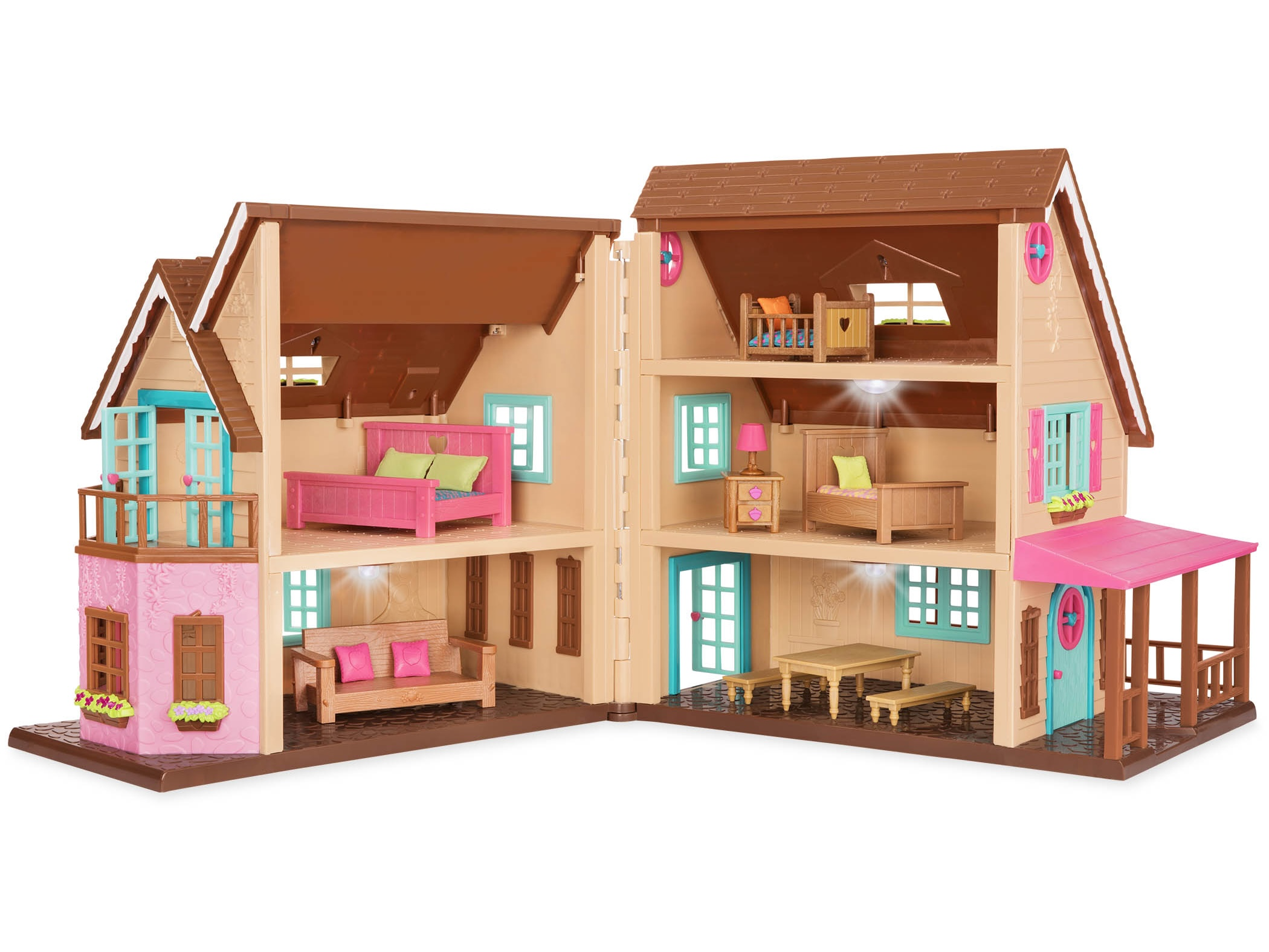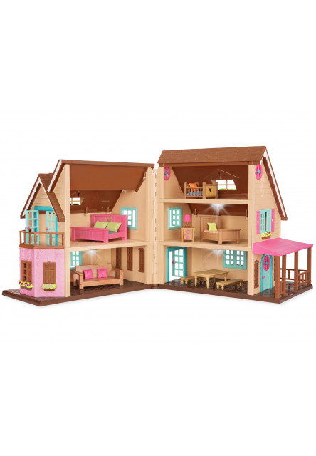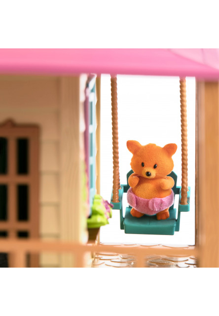 Otevírací 3-patrový domeček Hillside Cottage poskytuje nádherné bydlení postavičkám zvířátek Li'l Woodzeez. Uvnitř najdete nábytek včetně postelí pro celou rodinu, stolu se židlemi, pohovky atd. Ložnice v horním patře má vstup balkon, v přízemí je krásná veranda pro relaxaci venku a houpačka pro zábavu dětí. A když se večer setmí, můžete zapnout vnitřní i venkovní osvětlení!