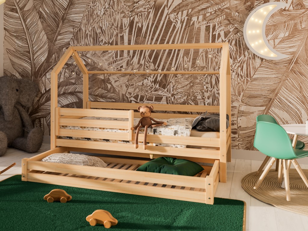 Domčeková posteľ Premium so šuflíkom šuplík, nožičky: bez nožičiek, Zábrany: predná, rozmer lôžka: 90 x 180 cm