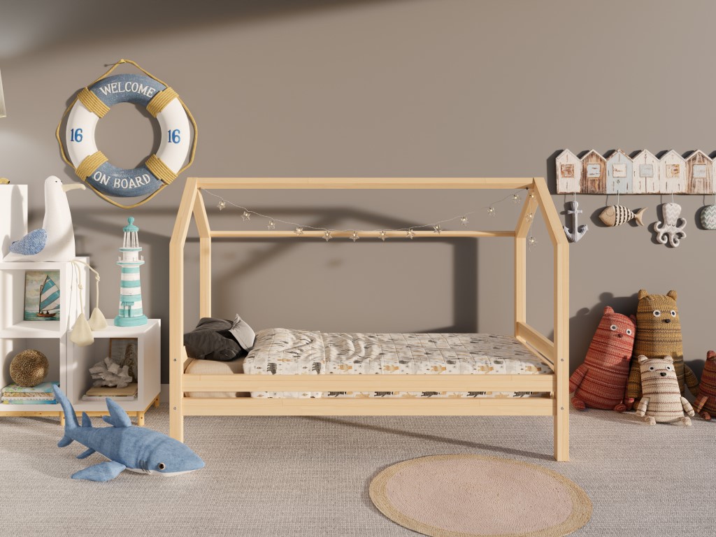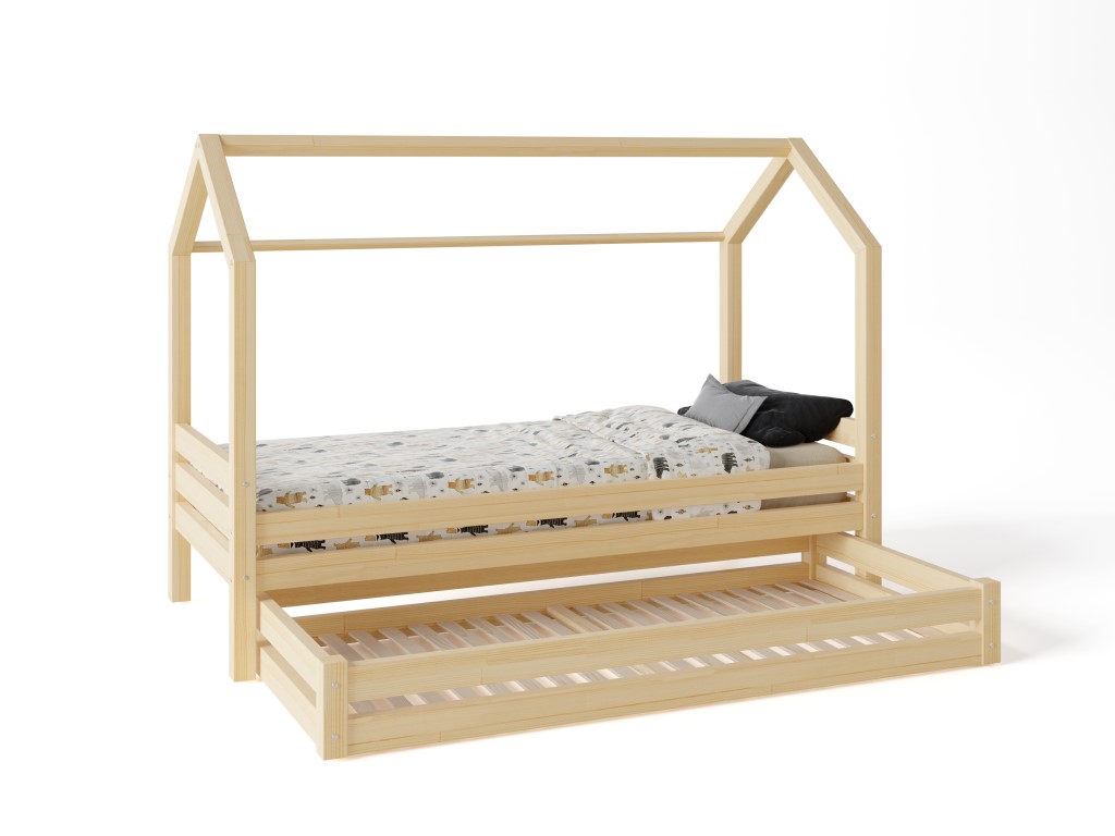 Udržateľný e-shop nie je iba pečiatka pri logu. Ďakujeme, že sa s nami staráte o životné prostredie. Ak premýšľate nad tým, akú posteľ kúpiť vášmu dieťaťu, už viac rozmýšľať nemusíte. Práve ste ju našli.  Detská domčeková posteľ je skvelým riešením, ak je vaše dieťa už pripravené spať samé. Útulný priestor je základom, a preto je posteľ od Elis Design v tvare domčeka. Naša domčeková posteľ je doplnená o jednu skvelú vychytávku, ktorou je šuplík. Dno šuplíka nie je plné, tvorí ho rošt. Ten môžete využiť ako úložný priestor väčších predmetov, ale využiť sa dá aj ako ďalšia posteľ. Takže ak k vám príde na "nocovačku" spolužiak či spolužiačka vášho dieťaťa, nie je nič ľahšie, ako vytiahnuť šuplík. Ak sa vaše dieťa necíti samé celkom komfortne, môžete mu zaobstarať spoločníkov v podobe zvieracích nálepiek. Ak má vaše dieťa rado pevnosti, okrem domčekovej postele mu môžete zaobstarať aj domčekový písací stôl či detský regál. Nezabúdame však ani na bezpečnosť Vášho dieťaťa. Domčeková posteľ je spracovaná z pevného borovicového dreva, je zabrúsená dohladka, takže nehrozia žiadne odery či úrazy. Masívna konštrukcia je prispôsobená aj tým najnáročnejším podmienkam. Nakonfigurujte si detskú domčekovú posteľ podľa seba: Postele vyrábame pre Vás na mieru, preto si môžete posteľ vybrať takú, aká vám vyhovuje. Na výber máte množstvo rozmerov, tie najobľúbenejšie pre vás máme skladom. Ak si vyberiete posteľ, ktorá skladom nie je, radi vám ju vyrobíme. Jej dodacia doba potom je 4-8 týždňov. Detskú domčekovú posteľ môžete mať: bez nožičiek - výška rámu od podlahy je 1 cm; dĺžka ku zlomu postele je 99 cm. s nožičkami - vyššie navŕtanie, vďaka čomu vznikne pod posteľou 20 cm priestor, kam si môžete vložiť šuplík. Celková výška postele je rovnaká v oboch prípadoch, bez nožičiek aj s nožičkami. Dĺžka nohy ku zlomu je 99 cm. jednoduchú bez zábran so zábranami - zábrany si môžete vybrať predné, zadné alebo obe zároveň. Zábrany sú 20 cm vysoké od hrany postele. Zadná zábrana je po celej dĺžke postele, predná do polovice postele. Zábrany sa jednoducho nasadzujú na hornú dosku. so šuplíkom - ktorý môžete využiť ako úložný priestor alebo výsuvné lôžko. Dno šuplíka nie je plné, tvorí ho rošt. Šuplík je vysoký 16 cm a dodávame k nemu aj lamelový rošt ZADARMO. Pre jednoduchšiu manipuláciu má šuplík gumové kolieska. Šuplík objednávajte v rovnakých rozmeroch ako posteľ a matrac do šuplíka objednávajte o 10 cm kratší (matrac nie je súčasťou). Výška matracu do šuplíka je max. 13 cm, ale odporúčame 11-12 cm. U domčekové postele s rozmerom lôžka 140 x 200 cm sú rozmery šuplíka 60 x 200 cm. so zábranami a šuplíkom - posteľ dostane kompletne plné vybavenie, so všetkým, čo ponúkame :-) ak si objednáte posteľ bez nožičiek, je možné neskôr ich dokúpiť za 51,99 EUR. PRÉMIOVÝ SPÁNOK JEDINE S DETSKOU POSTEĽOU DOMINANT PREMIUM: pevnejšia konštrukcia domčeka, masívna trámová konštrukcia - lepené hranoly 6,5 x 4,5 cm bezpečné zábrany majú dve dosky, preto je vhodná aj pre menšie deti ZDARMA pružný lamelový rošt, zabudnite na obyčajné dosky kvalitne spracované drevo s certifikátom FSC - neprispievate k devastácii lesov a pralesov ani nepodporujete nezákonnú ťažbu dreva borovicové drevo bez chemickej úpravy a s pôvodom v EÚ kvalitné hladké opracovanie, bez triesok lepené trámy, vďaka ktorým sa hranoly nekrútia, ale pevne držia bezpečná doprava k Vám domov Technické parametre a ďalšie užitočné informácie: Rozmery postele: rôzne veľkosti - 70x140 cm a 70x160 cm (výška 127 cm), 80x160 cm, 80x180 cm, 80x190 cm, 80x200 cm (výška 131 cm), 90x180 cm, 90x190 cm, 90x200 cm (výška 134 cm), 100x180 cm, 100x190 cm, 100x200 cm (výška 138 cm) Rozmery: posteľ je o 7 cm širšia a o 7 cm dlhší ako vybraný rozmer lôžka (presné rozmery v galérii obrázkov). Nosnosť: normovaná nosnosť je 100 kg, ale posteľ vydrží aj viac. Výška matracu do postele: maximálne 12 cm (nie je súčasťou balenia), výška matraca do šuplíka je maximálne 12 cm, avšak odporúčame 11-12 cm Materiál: kvalitné prírodné borovicové drevo Dodacia lehota je približne 4-8 týždňov od pripísania platby na účet. Upozornenie: V prípade objednania domčekovej postele širšej ako 100 cm (120 cm alebo 140 cm) je rozmer šuplíka iba 60 x 200 cm (z dôvodu lepšej stability postele je posteľ vybavená stredovou priečkou, ktorá neumožňuje pod posteľ zasunúť hlbší šuplík). Nábytok dodávame v balíku alebo na palete, negarantujeme dodanie (vynesenie) do domu či bytu, toto nie je štandardná služba dopravcu. V galérii obrázkov chýbajú obrázky variantov len s prednou alebo len so zadnou zábranou. Prosíme, pred montážou produktu si skontrolujte obsah balenia. Ak budú na zostavenie produktu použité poškodené komponenty, nebudeme môcť uznať Vašu následnú reklamáciu. K posteliam dĺžky 140 až 160 cm dodávame 14 ks lamiel, k posteliam dĺžky 180 až 200 cm dodávame 16 ks lamiel. Prvú lamelu namontuje cca 3 cm od okraja tak, aby ostatné lamely na seba nadväzovali v rovnakých rozostupoch. Udržiavajte rovnaké vzdialenosti medzi lamelami. Návod na zostavenie: Bezpečnostní pokyny Premium Domečková postel se šuplíkem Premium (bez nožiček) Domečková postel se šuplíkem Premium Dvojitý rošt_SK šuplík - návod Sledujte naše video a spoznajte kvalitu a detaily montáže našej prémiovej domčekovej postele: