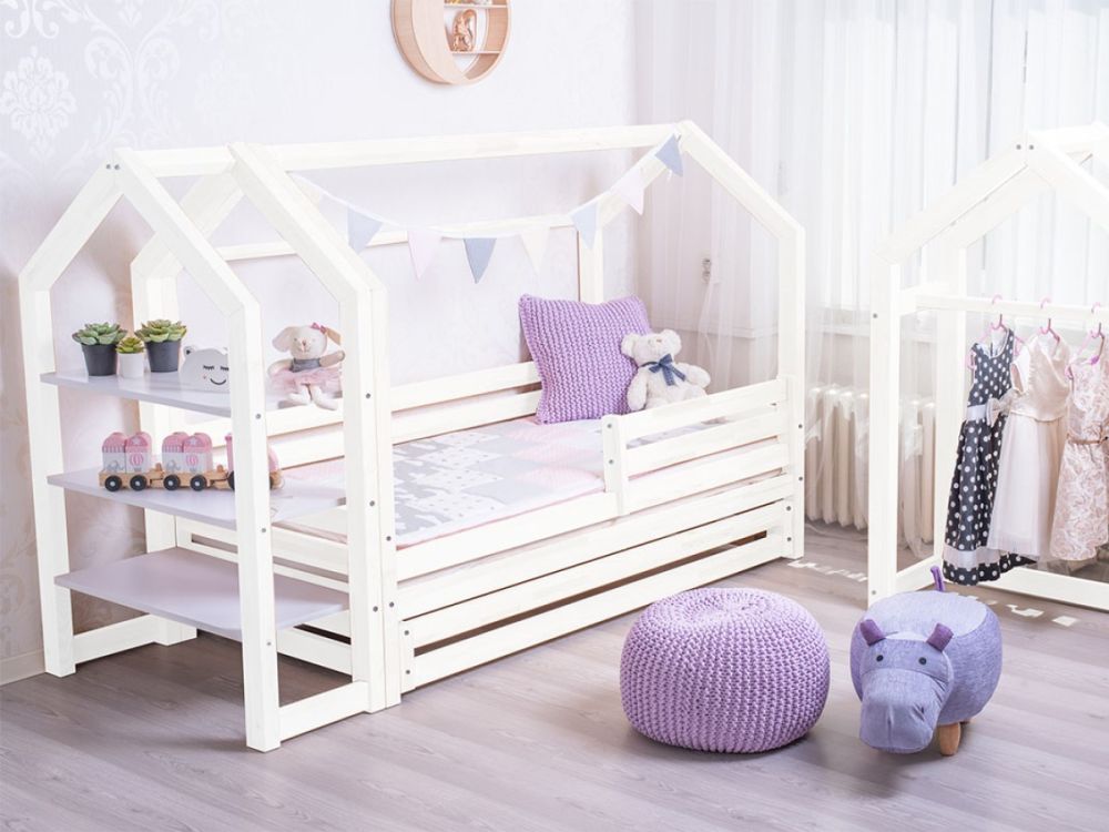 Domčeková posteľ Premium so šuplíkom biela rozmer lôžka: 100 x 180 cm, šuplík, nožičky: s nožičkami, bez šuplíka, zábrany: zadná
