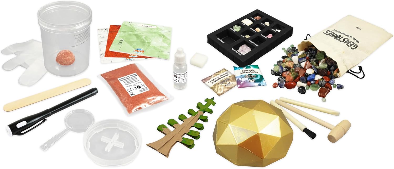 Objav svet minerálov a krištáľov priamo doma! Tento zábavný a poučný set umožní deťom skúmať skutočné kamene, vykopať vlastné surové kúsky, porovnať ich s brúsenými vzorkami a dokonca „pestovať“ veľké kryštály. Je to ideálny darček pre malého geológa — kombinuje hru, experiment a učenie.