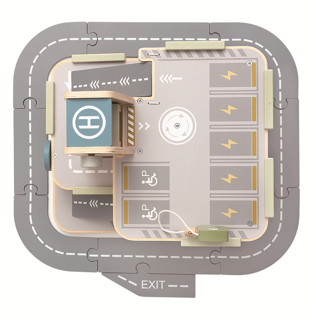 Všetkým automobilovým nadšencom sa rozžiaria oči, až uvidia garáž s cestou, výťahom a heliportom. Umiestnite dopravné značky, pripravte svoje autíčka a hra môže začať. Umyte svoje vozidlo v auto-umývačke. Natankujte pohonné hmoty pri stojane na prízemí. Máte elektro auto? Žiadny problém, vyvezte svoje vozidlo pomocou výťahu a pripojte ho k nabíjačke na druhom poschodí. Batéria je plná? Tak môžete vyraziť. Stala sa nehoda? Z heliportu na streche už štartuje vrtuľník. Táto edukatívna hračka motivuje deti ku kreatívnej a predstavivej hre. Rozvíja koordináciu ruka-oko, jemnú motoriku a zručnosť. Garáž s parkovacími plochami na troch úrovniach obsahuje aj cestu, 4 autíčka, helikoptéru a 3 dopravné značky. Hlavné vlastnosti: 3 podlažiagaráž s cestou, heliportom a výťahom, 4 autíčka, auto-umývačka, 2 tankovacie stojany (z toho 1 elektro), vrtuľník, 3 dopravné značkyinšpiruje ku kreatívnej a predstavivej hrerozvíja koordináciu ruka-oko, jemnú motoriku a zručnosťvhodné pre deti od 3 rokov