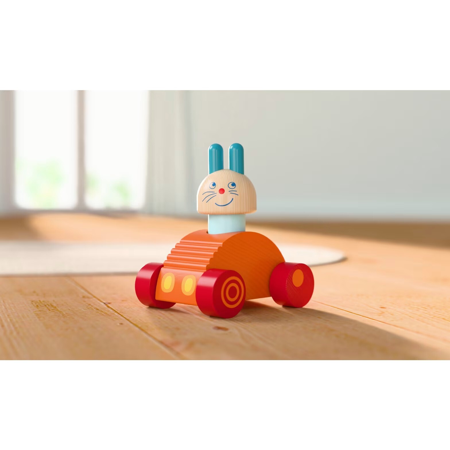 Roztomilý zajačik sa v svojom rýchlom autíčku preháňa po detskej izbe – a to nie je všetko. V okamihu sa vozidlo premení na hojdačku, ktorá pomáha deťom získať prvé pochopenie rovnováhy.