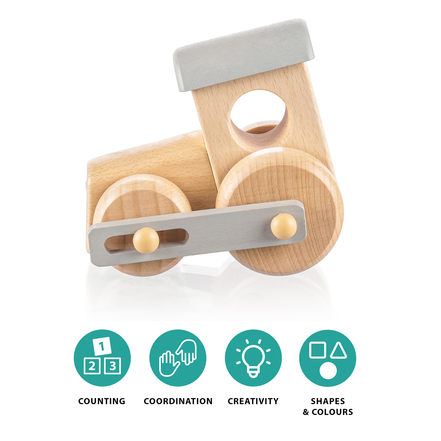 Drevená mašinka pre malých rušňovodičov. Vhodné pre deti od 16 mesiacov.