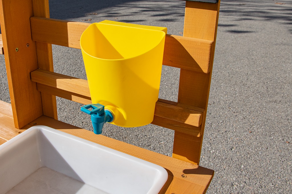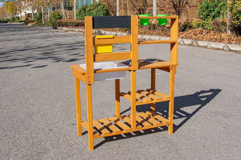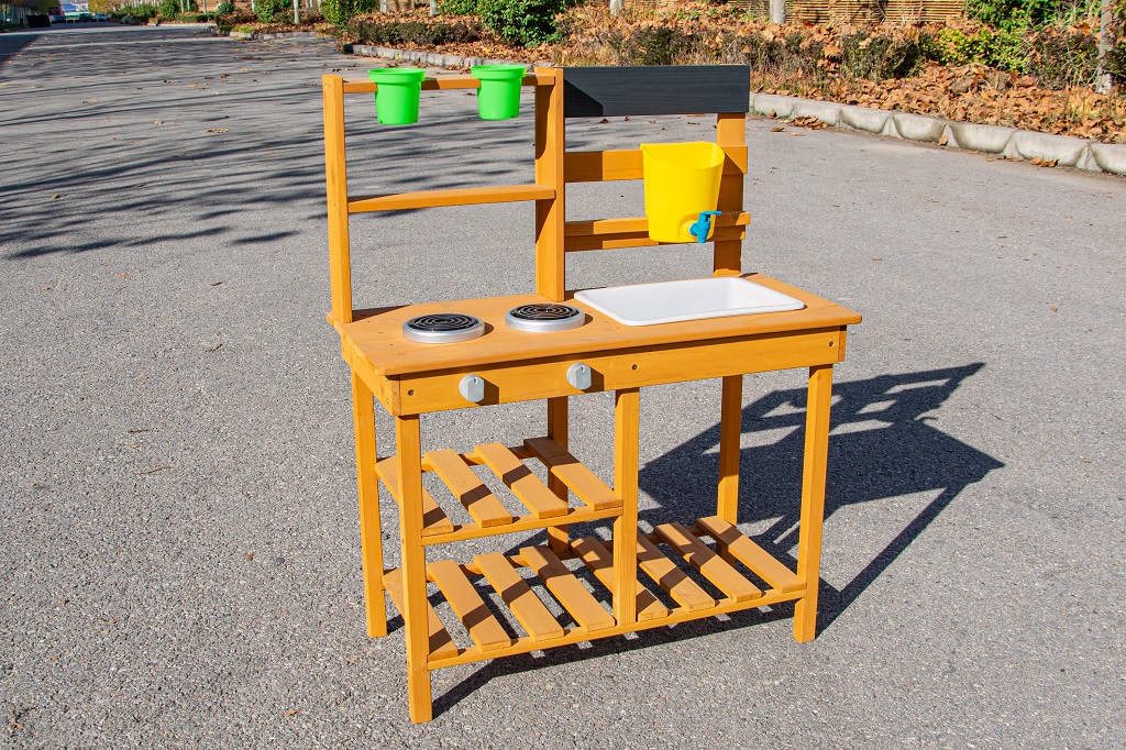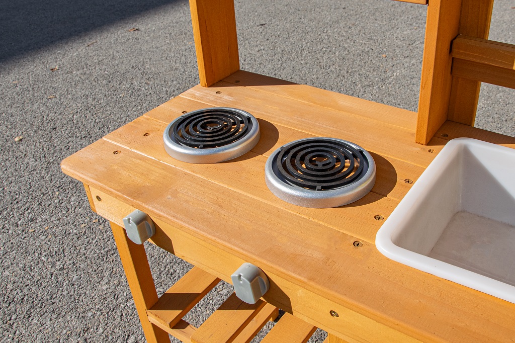 Doprajte deťom desiatu priamo pod holým nebom av objatí prírody. Na mieste, kde pokrmy vonia sviežim vánkom a slnko opeká bochníkmi z piesku a vody, vzniká priestor na hru plnú fantázie. Táto záhradná kuchynka ponúka skvelú príležitosť, ako u detí rozvíjať kreativitu, samostatnosť a kulinárske zručnosti pri hre na čerstvom vzduchu.Kuchynka je vybavená užitočnými prvkami, ako je džbán s kohútikom, drez, dve platničky na varenie a dva kvetináče. Nechýbajú ani rozsiahle úložné priestory, ktoré sa hodia na uloženie všetkého príslušenstva. A aké je dnes menu? Čistá fantázia! Hlavné vlastnosti: kompaktné rozmerymultifunkčné a rozmanité využitierozmerný úložný priestor