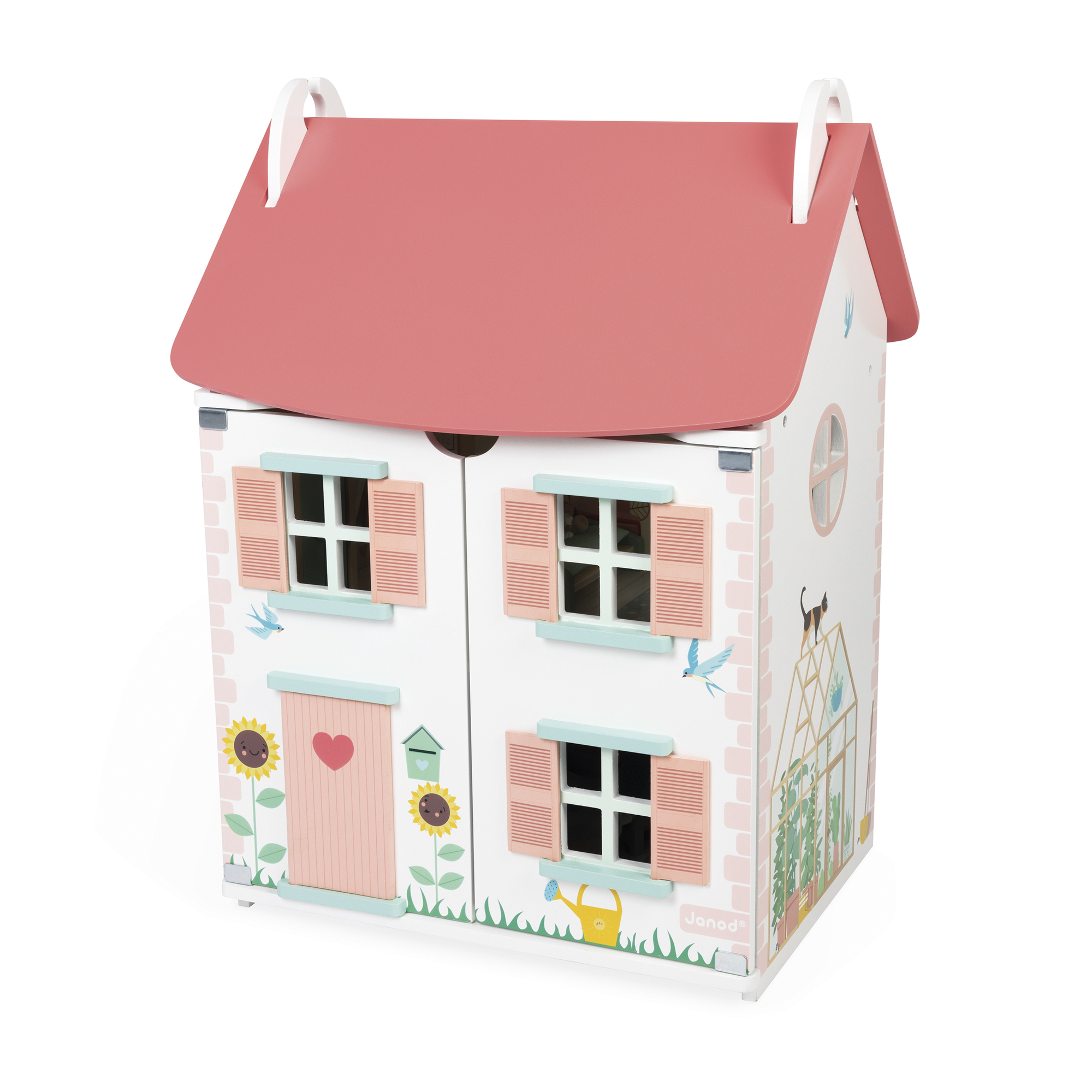 Vitajte v očarujúcom svete tohto nádherného trojposchodového domčeka pre bábiky! Je plný šarmu a krásne zdobený a obsahuje kusy zladeného nábytku a 4 rozkošné drevené postavičky pre vymýšľanie nekonečných príbehov! Otvorte dvere a objavte každú izbu, obývačku, jedáleň, spálňu... rozložte nábytok, oživte svoje postavičky... potom všetko opäť zatvorte pre jednoduché uskladnenie. S ružovými kockami, motýľmi a miniatúrnymi stromčekmi tento domček vyžaruje jemnú, rozmarnú atmosféru. Praktický a dômyselný domček sa otvára aj cez strechu pre ľahký prístup do všetkých miestností. Dvere sú magnetické a ľahko sa zatvárajú ako mávnutím čarovného prútika. Dodáva sa so 4 postavičkami, je tiež kompatibilný s postavičkami do veľkosti približne 11,5 cm a obsahuje 11 doplnkov na usporiadanie podľa vašich predstáv: skriňa s otváracími dverami, posteľ s prikrývkou, toaletný stolík, vaňa, pohovka, lampa, stôl, dve stoličky a kuchynka. Jednoduchá montáž pre okamžitú zábavu! Hračka na hranie vyrobená z dreva FSCTM pre deti od 3 rokov.