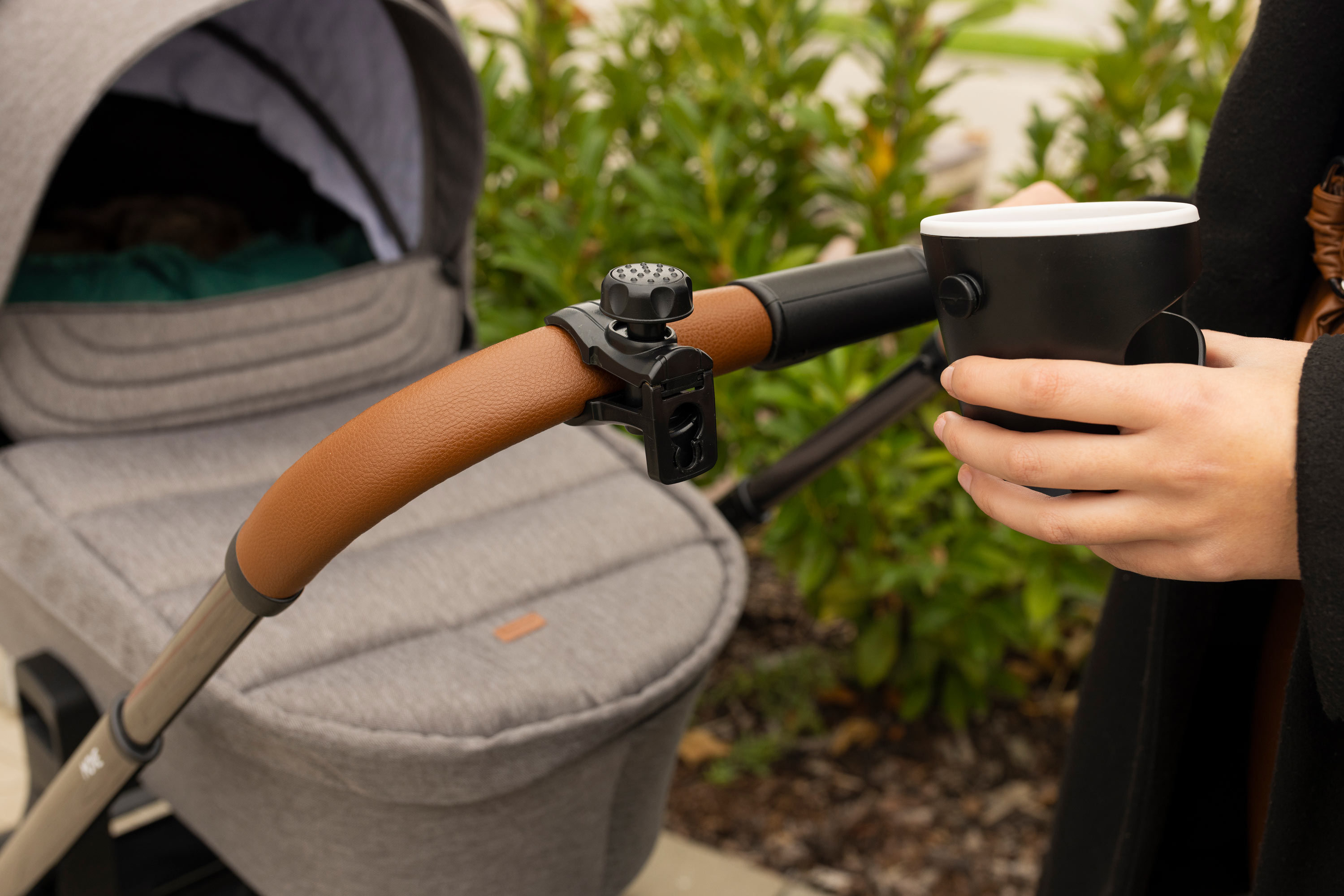 Držiak na nápoje na kočík – Deluxe vám umožní bezpečne odložiť fľašu s kávou alebo vodou, keď ste na prechádzke s dieťaťom. Uhol držiaka môžete nastaviť tak, aby sa nápoj nerozlial. Hodí sa na väčšinu veľkostí pohárov, šálok alebo fliaš na vodu. Ľahko sa inštaluje pripevnením na rukoväť kočíka a utiahnutím klipu. Na uľahčenie údržby možno držiak z klipu vybrať a umývať ho samostatne v umývačke riadu. Vyrobené z materiálov šetrných k životnému prostrediu.