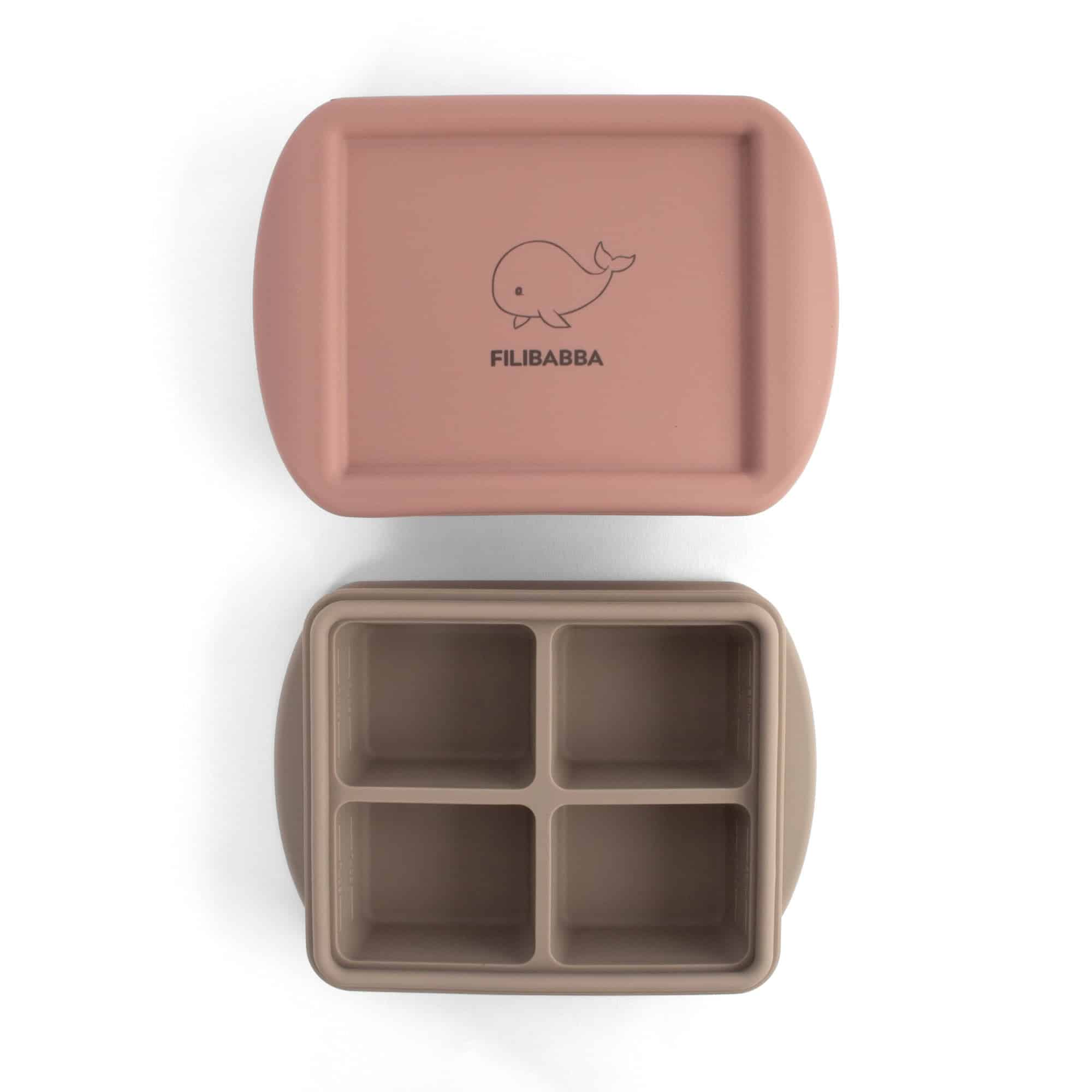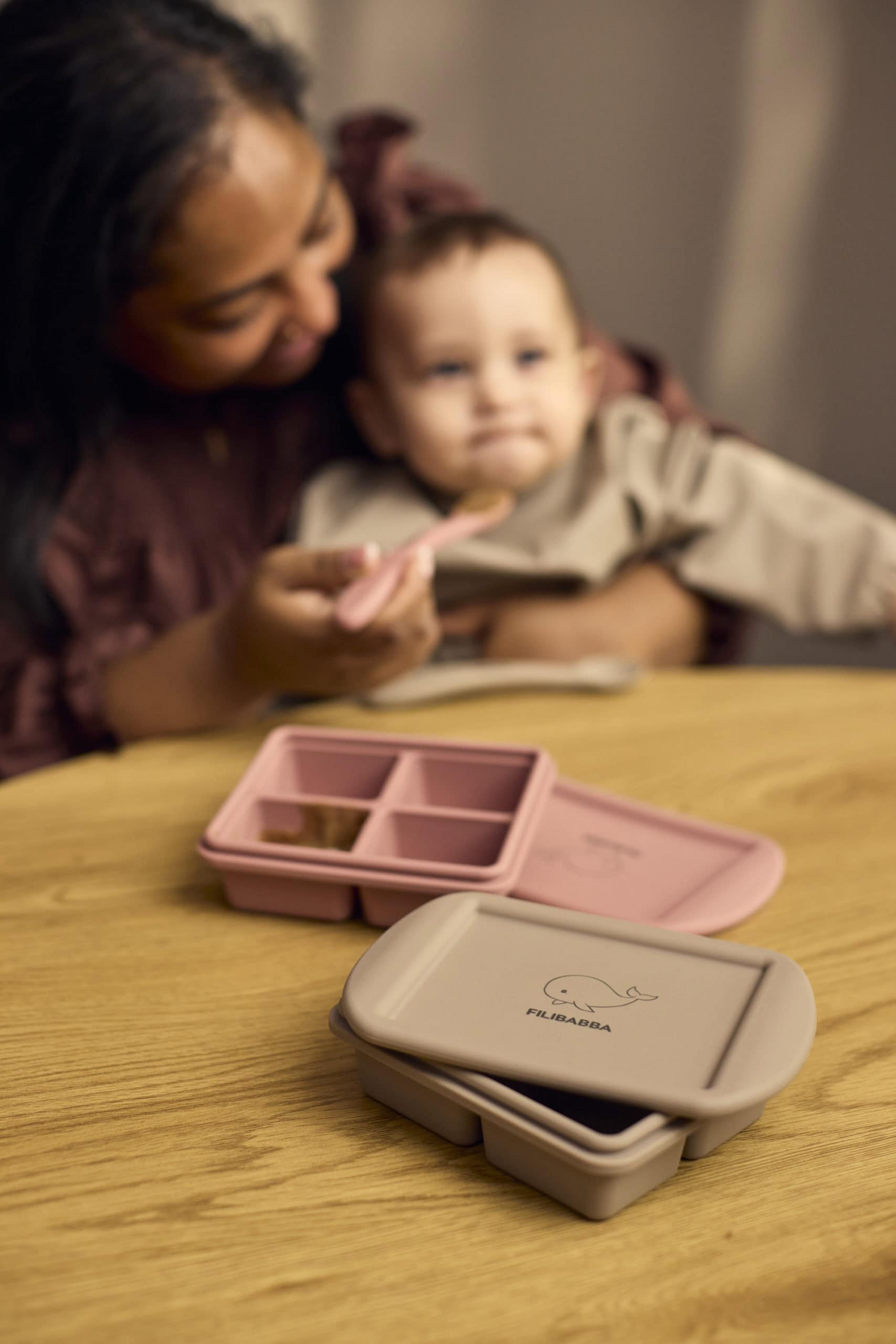 Každá miska má štyri priehradky s celkovým objemom 270 ml a je vybavená vzduchotesným vekom, ktoré udrží jedlo čerstvé. Vďaka pružnému silikónovému materiálu sa zmrazené porcie ľahko vyberajú, zatiaľ čo odolné prevedenie je ideálne na každodenné používanie. Vyrobené sú zo 100 % silikónu v potravinárskej kvalite s certifikátom LFGB. Misky sú bezpečné na používanie v mrazničke, mikrovlnnej rúre aj umývačke riadu (pred ohrevom alebo umývaním treba odstrániť veko).