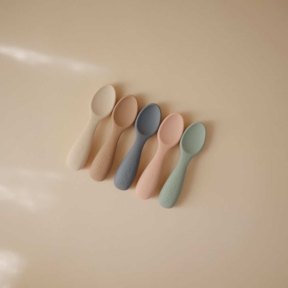 Naštartujte svoje malé batoľa do samostatného jedenia so štartovacími lyžičkami Mushie's Toddler! Lyžica poskytne deťom najlepší štart pri objavovaní tuhej stravy; ľahko uchopiteľná rukoväť je navrhnutá pre malé ručičky, čo uľahčuje držanie a zároveň podporuje koordináciu a sebadôveru, keď sa deti učia jesť samostatne. Lyžička je vyrobená z potravinárskeho silikónu a je šetrná k citlivým ďasnám aj k vznikajúcim zubom Štartovacie lyžičky pre batoľa Mushie – detaily