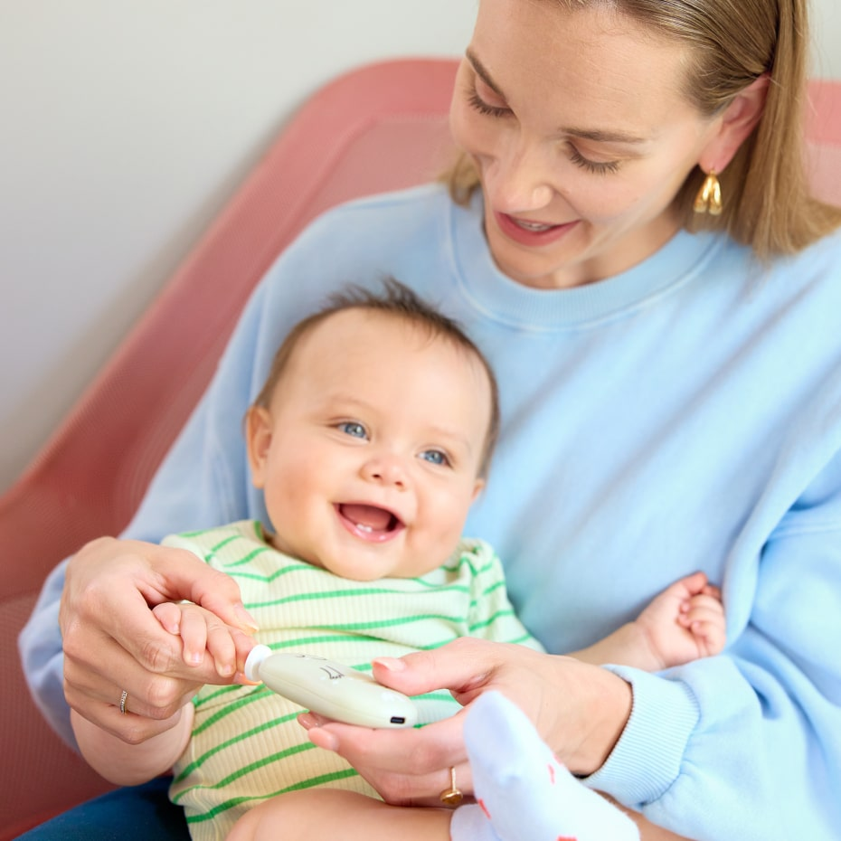 Elektrický pilník na nehty pro děti Bebeconfort je tichý, šetrný a velmi přesný pomocník pro úpravu nehtů na rukou i nohou už od narození. Díky třem rychlostem, LED světlu a sadě nástavců je pilování bezpečné a jednoduché i u úplně malých nehtíků. Pilník je dobíjecí přes USB-C a vše pohodlně uložíte do přiloženého pouzdra, je tak ideální i na cesty.