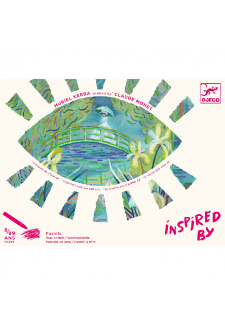 Muriel Kerba, inšpirovaná dielom Clauda Moneta, nám ponúka triptych na dotvorenie v impresionistickom štýle hodnom panoramatických fresiek Monetových Lekien na rybníku s použitím farebných dotykov s olejovými pastelmi.