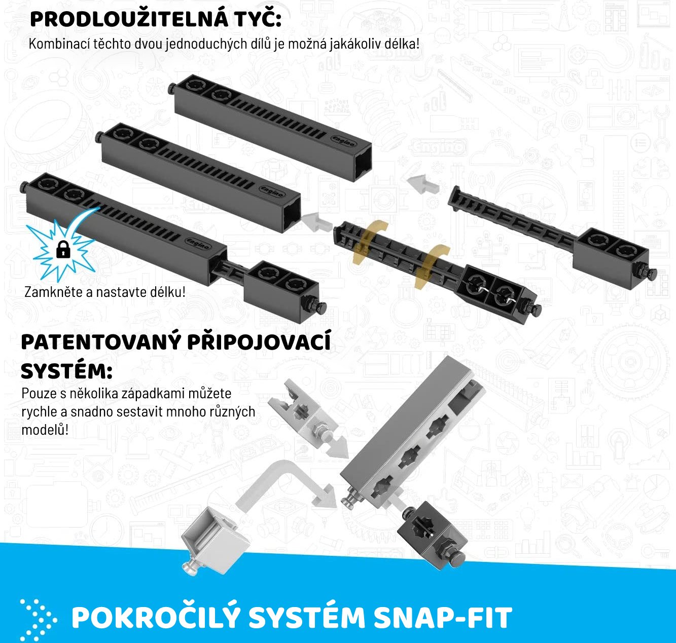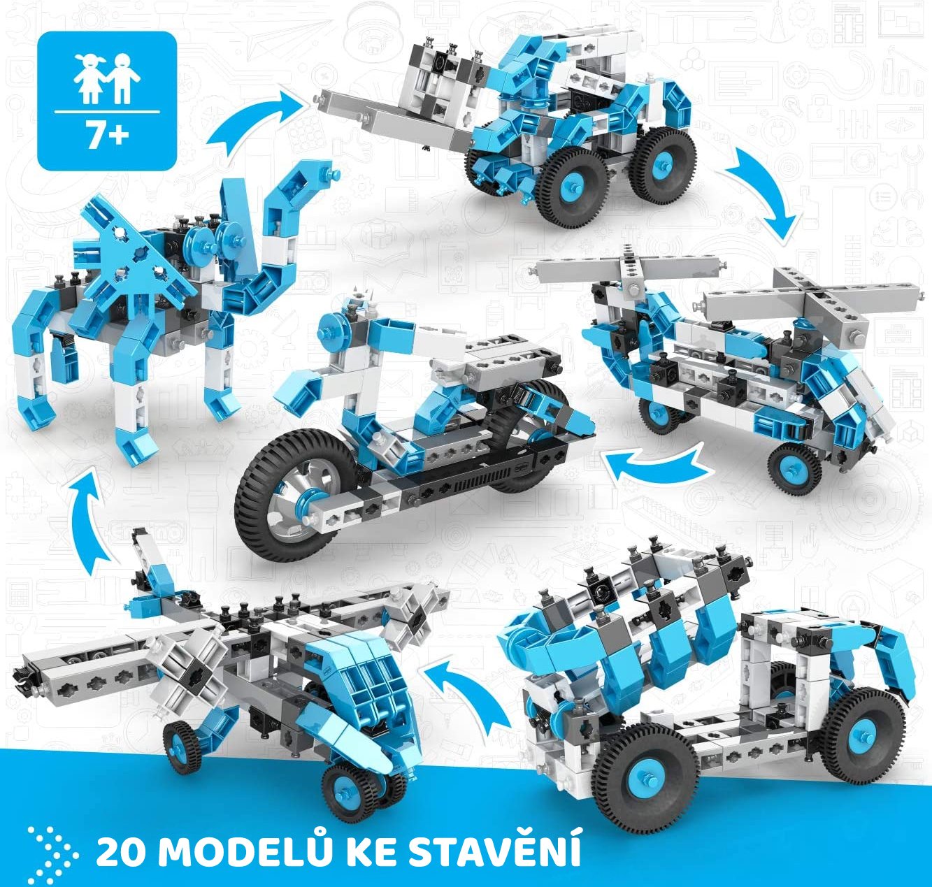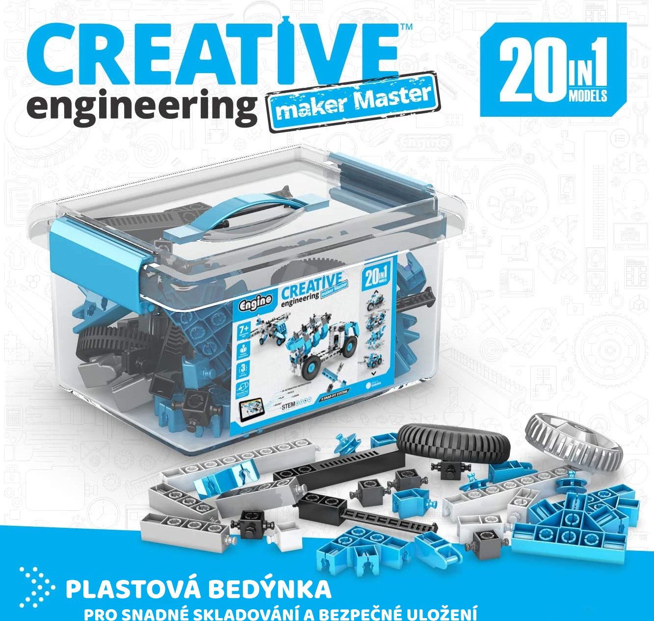 Ukážte všetkým svoju kreativitu so stavebnicou Engino, ktorá obsahuje 144 dielikov, z ktorých je možné postaviť najrôznejšie projekty. Stavebnica je uložená v praktickom kufríku a dieliky sa do seba jednoducho zacvakávajú. Nechajte sa uniesť svojou fantáziou.Rozvíjajte kreatívne myslenie, priestorové videnie a navrhovanie 3D priestoru so stavebnicou Engino. Stavebnica Maker Master 20v1 obsahuje 144 dielov a zostavíte si z nich 20 úžasných hračiek. Stavebnica je vhodná od 7 rokov. STEM stavebniceS – science – vedaT – technology – technológieE – engineering – technikaM – mathematics - matematika Obsah balenia: 144 dielov na zostavenie 20 hračiek Manuál – časť projektov tlačená, časť online alebo v aplikácii