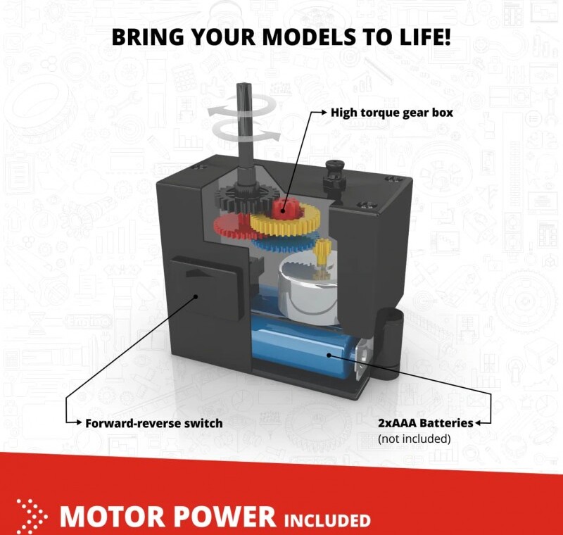 Táto stavebná hračka s viacerými modelmi posunie kreativitu dieťaťa do inej dimenzie. Skvelá modelová súprava pre začiatočníkov na objavovanie a záujem o STEM prostredníctvom kreatívneho stavebného prvku. Nová séria CREATIVE BUILDER - Multimodel je najnovšou inováciou veľmi úspešného radu INVENTOR 2017, ktorý prináša to najlepšie z ENGINO: schopnosť rýchlo a jednoducho postaviť čo najviac modelov! ide o klasický stavebný systém, vďaka ktorému sú súpravy vhodné pre deti od 6 rokov, čo predstavuje odrazový mostík medzi líniami Qboidz a Mechanics. Rozvoj kreativity je hlavným zameraním tejto série, od 10 modelov až po 120 modelov! Všetky naše sady od 30 modelov a vyššie obsahujú nový 2-rýchlostný motor ENGINO pre animované stavby, od áut cez žeriavy až po dinosaury a helikoptéry. Jediným limitom je fantázia dieťaťa! Počet dielov v balení: 218 Pre vek 7+