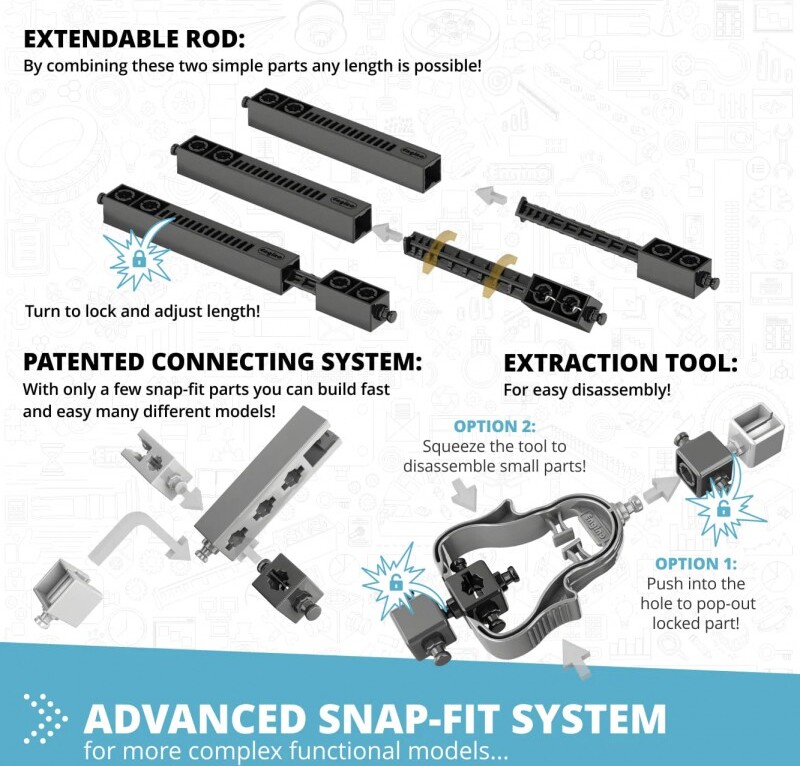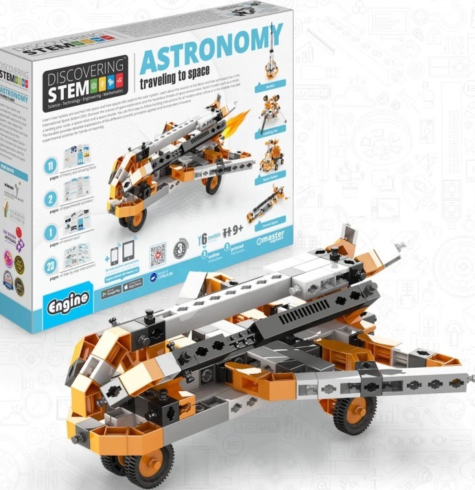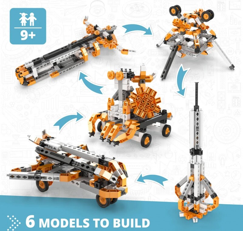 Zistite, ako sa rakety dostávajú do vesmíru a ako kozmické lode skúmajú slnečnú sústavu. Dozviete sa o misii na Mesiac a o tom, ako žijú astronauti na Medzinárodnej vesmírnej stanici (ISS). Objavte vedu o prieskume vesmíru a nebezpečných hrozbách vesmírneho prostredia. Postav 5 modelov, ako je raketa, pristávací tanier, váha, vesmírny robot a raketoplán. Jednoduché návody na zostavenie všetkých modelov nájdete buď online, alebo v priloženej brožúre. Brožúra poskytuje podrobné vysvetlenia rôznych použitých vedeckých princípov a zahŕňa inovatívne experimentálne aktivity pre praktické učenie K dispozícii je aj sekcia Kvíz, v ktorej môžete otestovať svoje novonadobudnuté vedomosti!