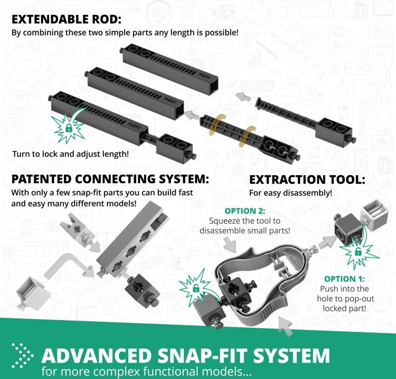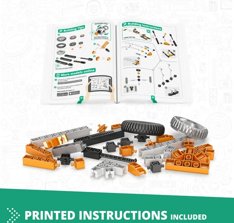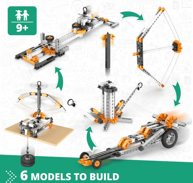 Dozviete sa všetko o Newtonových pohybových zákonoch, ktoré sú základom klasickej mechaniky, ktorá stále opisuje väčšinu každodenných životných situácií. Experimentujte s kinetickou a potenciálnou energiou, aby ste objavili vlastnosti energie a ako sa transformuje z jednej formy do druhej. Postavte si 6 funkčných modelov, ako napríklad nárazové testovacie zariadenie, raketomet, brúsne koleso, luk a šíp, gumené auto a platformu na testovanie zotrvačnosti. Jednoduché návody na zostavenie všetkých modelov nájdete buď online, alebo v priloženej brožúre. Brožúra poskytuje podrobné vysvetlenia rôznych použitých vedeckých princípov a zahŕňa inovatívne experimentálne aktivity pre praktické učenie. K dispozícii je aj sekcia Kvíz, v ktorej môžete otestovať svoje novonadobudnuté vedomosti!