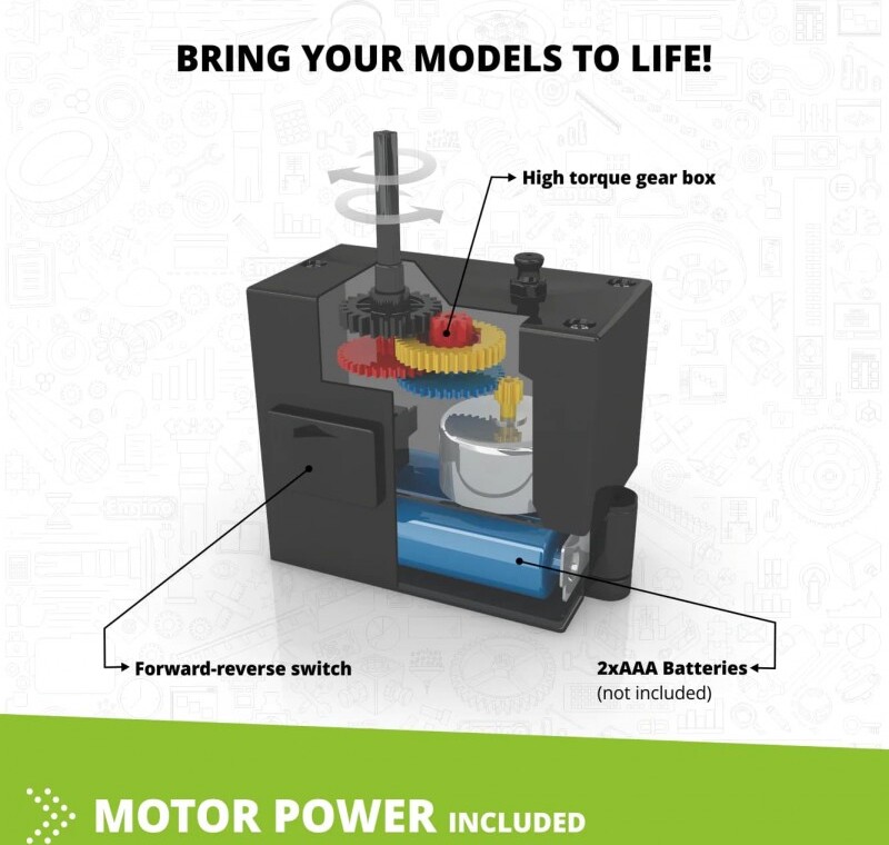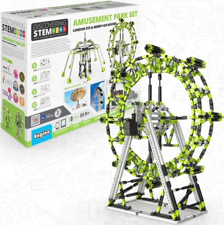 V zábavných parkoch sú hlavnými atrakciami často vzrušujúce, rýchle jazdy alebo romantické pomalé kolesá, ktoré ponúkajú nádherný výhľad zhora. Táto sada obsahuje jeden motor s prevodovkou na pohon štyroch veľkých modelov takýchto jázd: ruské koleso, London Eye, kolotoč a posilňovač. Okrem toho môžete experimentovať s ozubenými kolesami stavaním štyroch menších modelov, ako je prevodovka, experimentálny žeriav, kolotoč a planetárium. Jednoduché návody na zostavenie všetkých modelov nájdete buď online, alebo v priloženej brožúre. Brožúra poskytuje podrobné vysvetlenia rôznych použitých vedeckých princípov a zahŕňa inovatívne experimentálne aktivity pre praktické učenie. K dispozícii je aj sekcia Kvíz, v ktorej môžete otestovať svoje novonadobudnuté vedomosti!