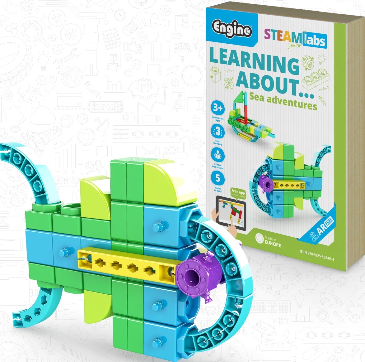Zažite zázraky oceánu s našou podmanivou sadou STEM LABS – Learning about Sea Adventures. Táto vzdelávacia hračka, navrhnutá pre predškolákov, ponúka praktickú cestu do podmorského života. Ponorte sa do sveta učenia a zábavy s touto interaktívnou súpravou. Táto kombinácia hračiek a kníh, ktorá obsahuje základné koncepty STEAM, predstavuje deťom tajomstvá mora. Prostredníctvom pútavých aktivít a podrobných inštrukcií môžu deti pod vedením dohliadajúceho dospelého postaviť modely vodných tvorov. Každá téma poskytuje vzrušujúce fakty a poznatky, ktoré zlepšujú ich chápanie morských ekosystémov. Ponorte svoje dieťa do kreatívnych aktivít, ako je vyfarbovanie, spájanie bodiek a obkresľovanie písmen. Tieto cvičenia podporujú kognitívny rozvoj tým, že učia tvary, farby a základné matematické pojmy. Dobrodružstvo navyše pokračuje s našou bezplatnou aplikáciou rozšírenej reality (AR), ktorá oživuje morský svet interaktívnym a zábavným spôsobom.