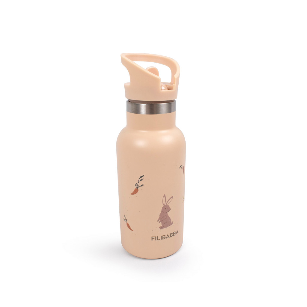 Bez ohľadu na to, či spoznávate mestskú džungľu alebo sa túlate prírodou, fľaša na vodu je jednoducho nenahraditeľná pre veľkých i malých dobrodruhov. Fľaša na pitie FILIBABBA z nehrdzavejúcej ocele sa dodáva s dvoma uzávermi; klasický skrutkovací uzáver a vrchnák s integrovanou slamkou. Týmto spôsobom sa fľaša prispôsobuje vašim preferenciám - každý deň. Vďaka vynikajúcim vlastnostiam materiálu chutí voda z nerezových fliaš vždy sviežo. Fľaša udrží chladené nápoje studené a horúce nápoje teplé. Fľaša má objem 350 ml. Aby ste čo najlepšie využili svoju nerezovú fľašu, odporúčame ju opláchnuť ručne. Vyberte si medzi výtlačkami najroztomilejších zajačikov a najobľúbenejších hospodárskych zvierat. Fľaša z nehrdzavejúcej ocele bude perfektným spoločníkom na cestách spolu s silikónový obedárom v rovnakom vzore. Rozmery: 20x7 cm Hmotnosť: 220g