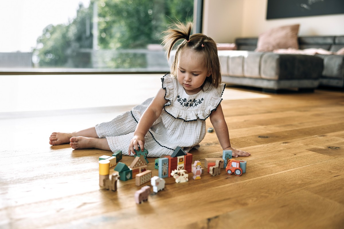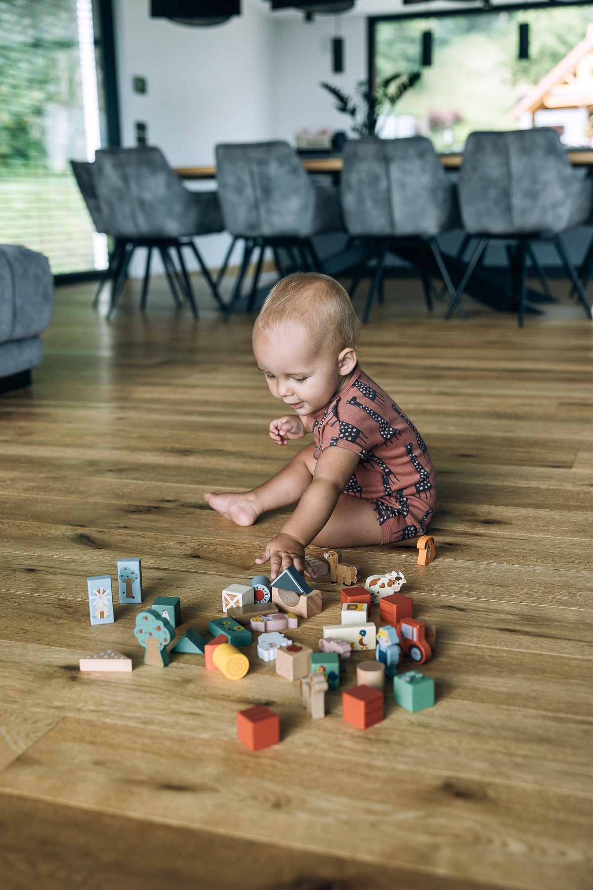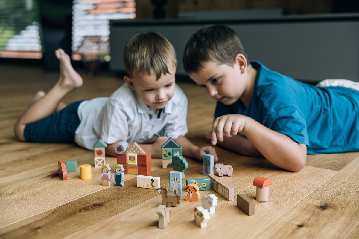 dřevěná stavebnice s farmářským motivem pro kreativní hru