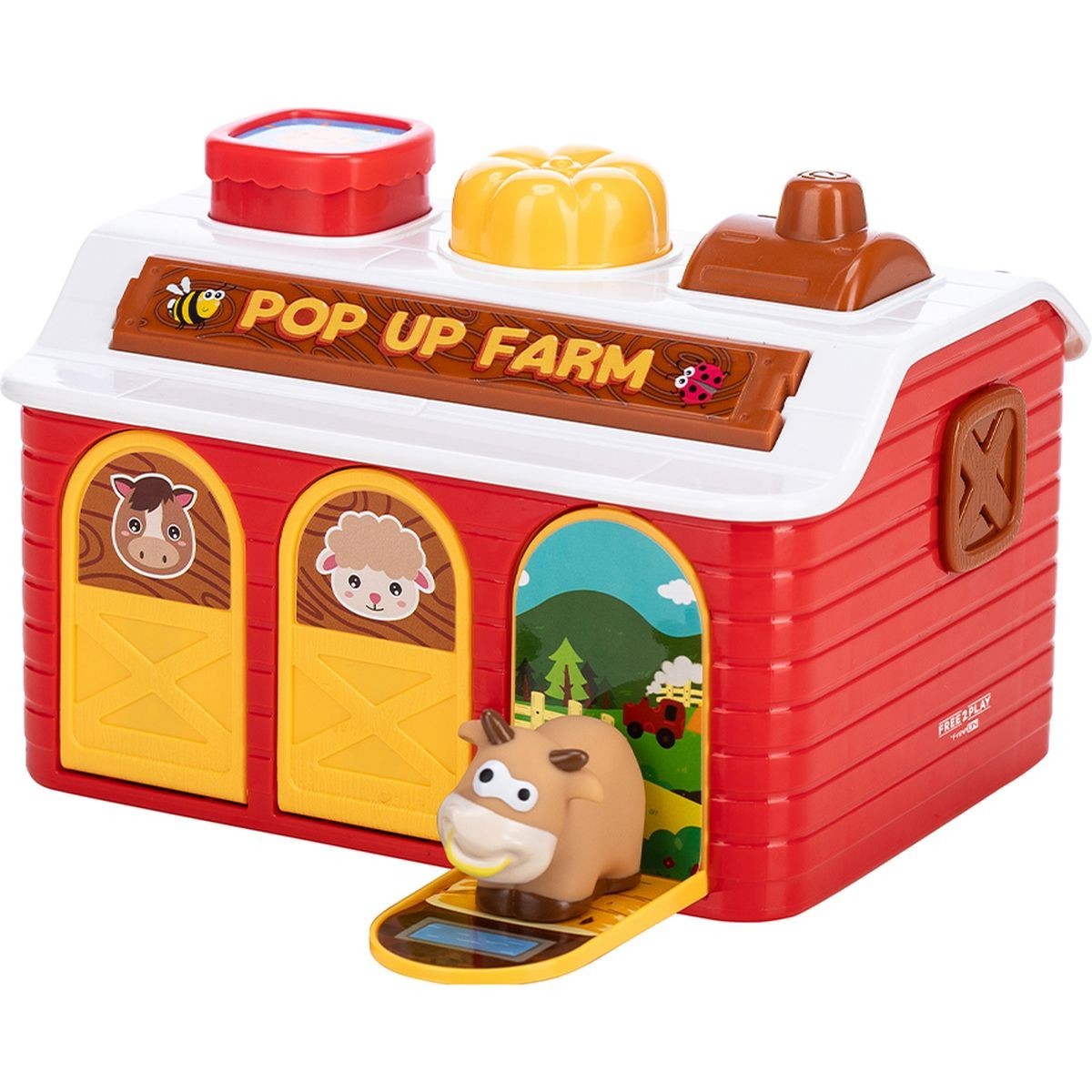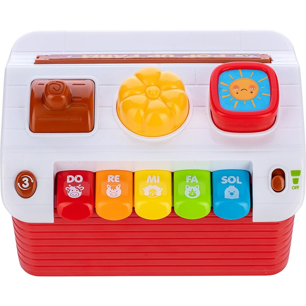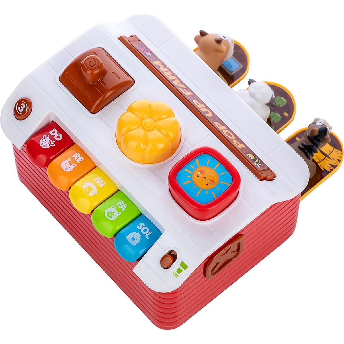 Interaktivní zvířátka – 3 zvířátka vyskakují ze stodoly při stisknutí, otočení nebo posunutí ovládacích prvků